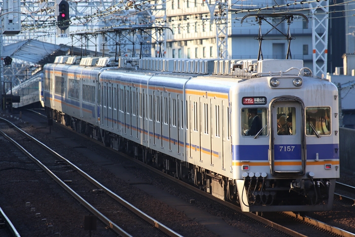 | 続いて3rd CHAPTERではなんば駅7時4分発高野線急行橋本行き、なんば駅7時4分発南海線普通和歌山市行きの画像から御紹介します。当CHAPTERの注目は今のウチに撮りためしておきたい7100系、久しぶりに8連の7100系がやってきました。 |