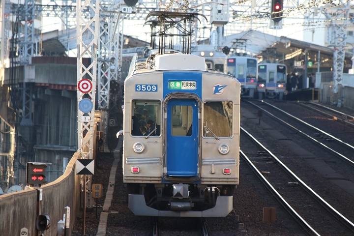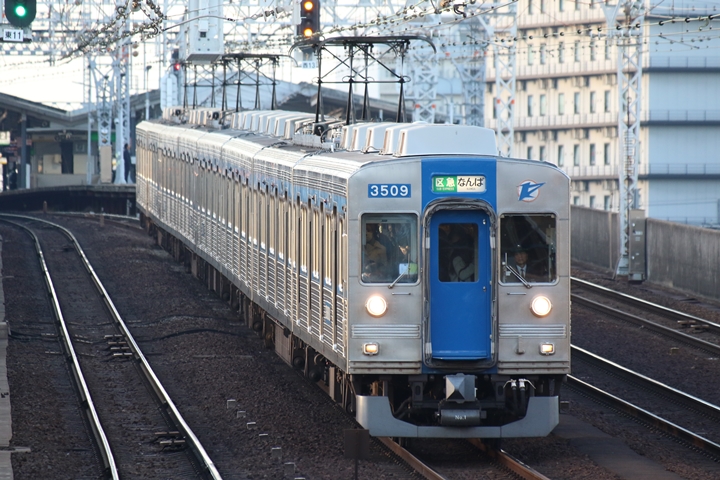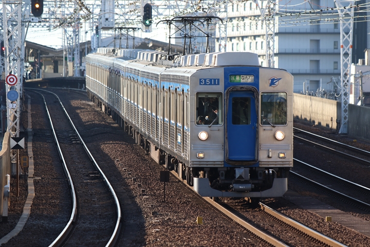 | 続いて2nd CHAPTERでは今宮戎駅6時45分発高野線各停河内長野行き、なんば駅6時45分発南海線回送車の画像から御紹介します。当CHAPTERの注目は今のウチに撮りためしておきたい泉北3000系、この日は3511Fがやって来ました。 |