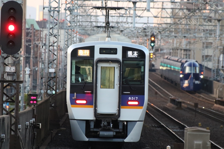 | 続いて2nd CHAPTERでは萩之茶屋駅7時30分発高野線各停河内長野行き、天下茶屋駅7時30分発南海線特急サザンなんば行きの画像から御紹介します。当CHAPTERの注目は50000系と31000系の並び、並走を期待していたのですが残念ながら並走してくれなくて残念な一枚に仕上がりました。 |