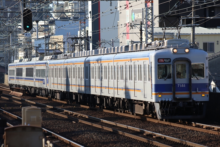 | 続いて6th CHAPTERでは天下茶屋駅8時30分発高野線特急りんかんなんば行き、天下茶屋駅8時32分発南海線普通なんば行きの画像から御紹介します。当CHAPTERの注目は泉北7020系、この塗装も今のウチに撮りためしておきたい車両です。 |