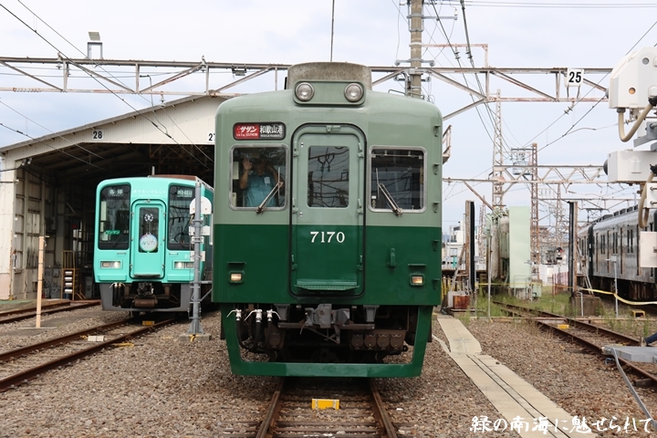 | そして12時30分からの受け付けを済ませます。実はこの日、南海主催の「7100系旧塗装復元デザイン車両とかなた撮影会」があり私も行ってきました。撮影会は13時30分から14時30分までの1時間で参加費¥5,100円だったのですが迷う事なくクリック、なお今回はダイジェスト版ではなく四回に分けて一気に御紹介しようと思います。和歌山市駅を13時に出発、約10分で和歌山市車庫に到着、予定より早めに撮影会がスタート。 |