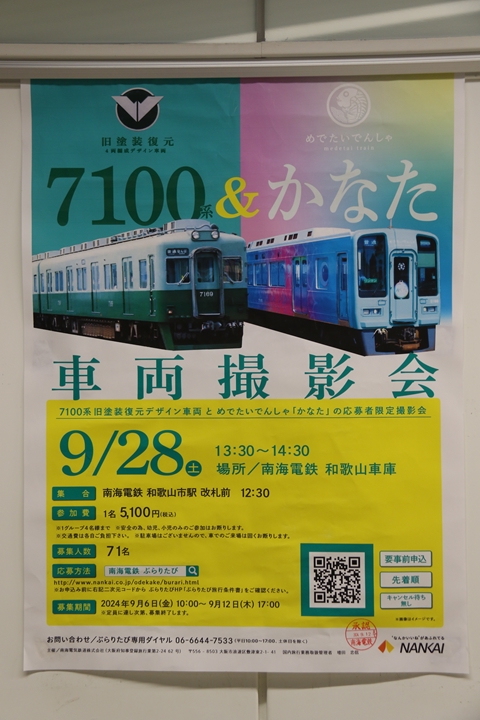 | 7100系旧塗装復元デザイン車両とかなたの異色な撮影会ながらとても満足いく撮影会でした。ともあれ南海関係者様方、本当にありがとうございました。 m(__)m |