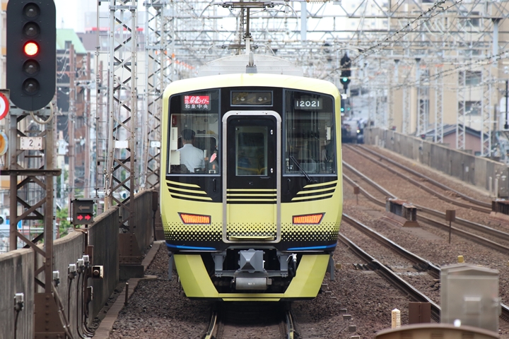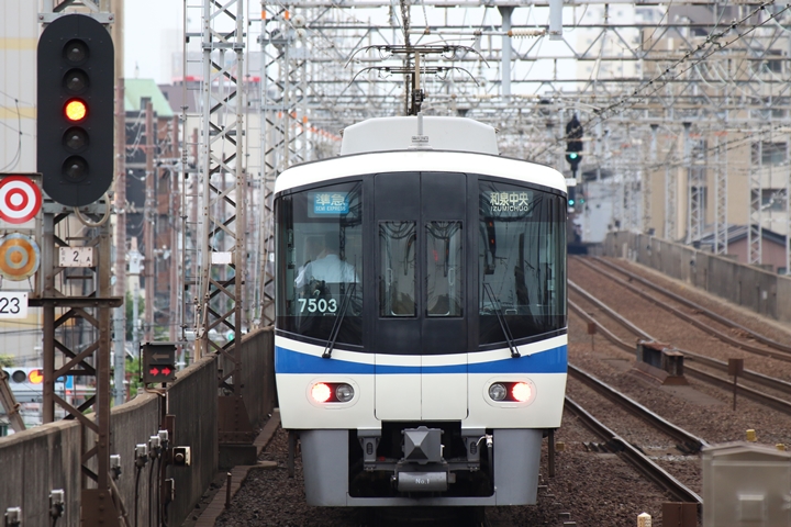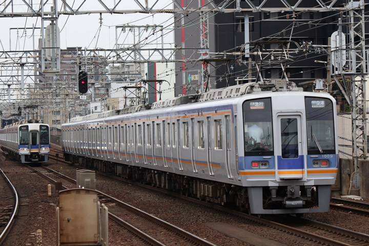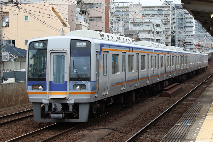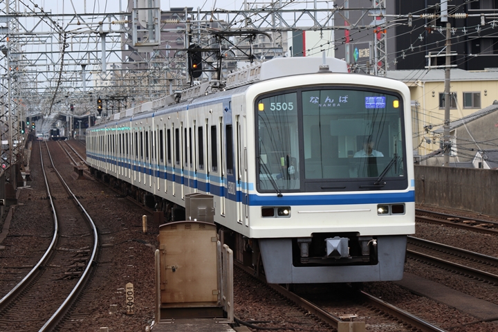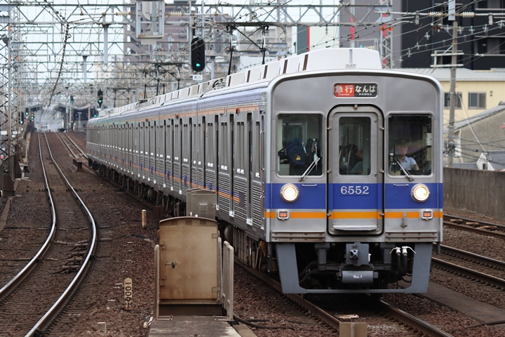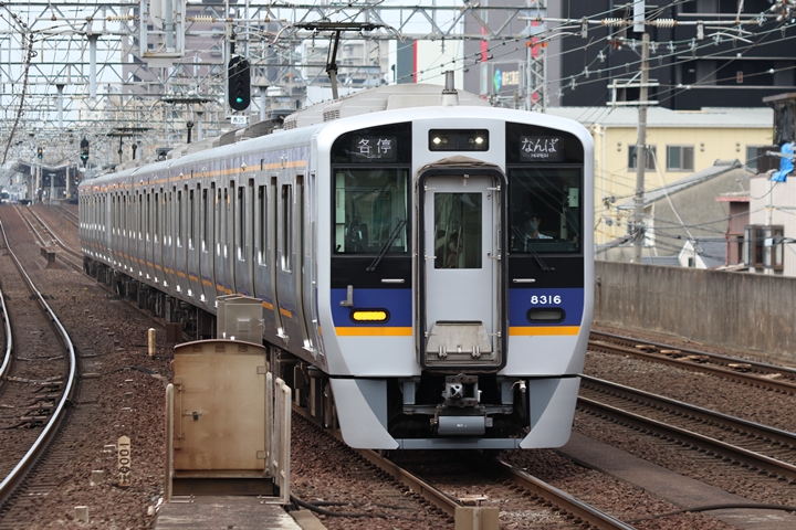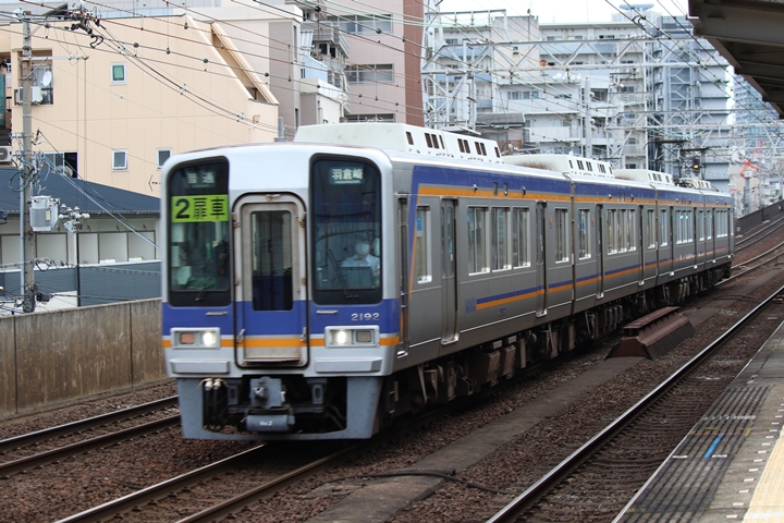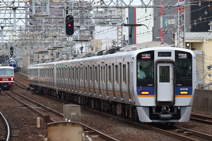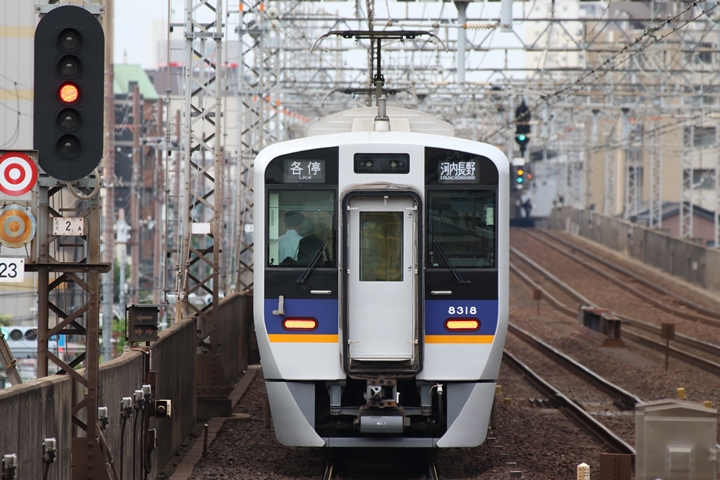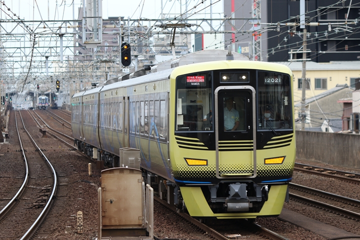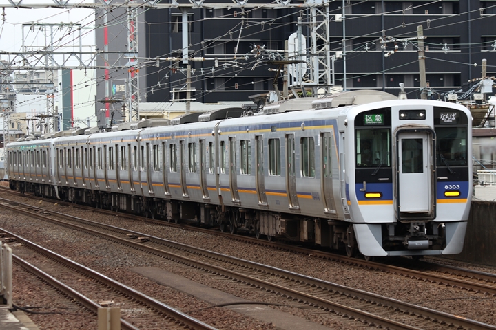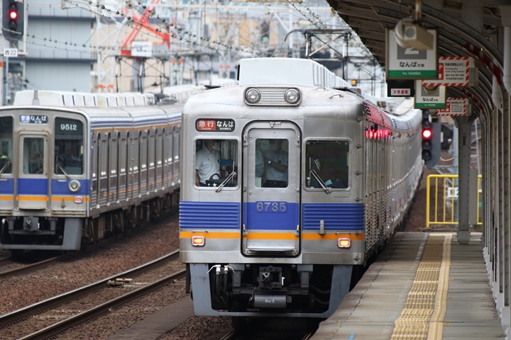 | 続いて3rd CHAPTERでは新今宮駅7時16分発南海線空港急行関西空港行き、天下茶屋駅7時18分発高野線急行なんば行きの画像から御紹介します。当CHAPTERの注目は5月30日(木)から運行開始した新しいデザインの泉北ライナー、走行シーンはこの日初めての撮影です。 |