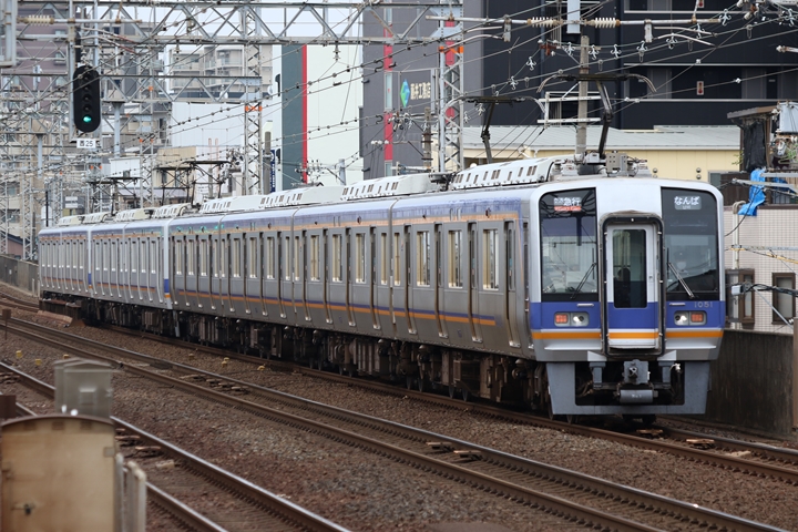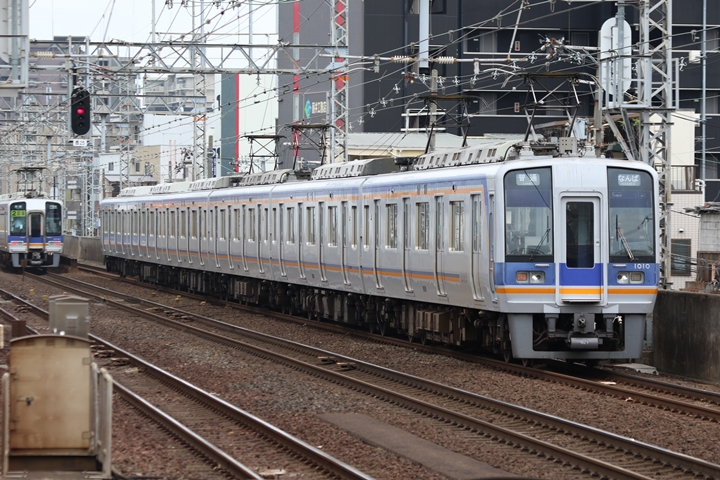 | 続いて2nd CHAPTERでは新今宮駅6時54分発高野線準急行和泉中央行き、新今宮駅6時56分発南海線区間急行和歌山市行きの画像から御紹介します。当CHAPTERの注目は高野線から転属した1051F、曇り空でも1051Fと後方2連×2編成の色の違いが解ります。 |