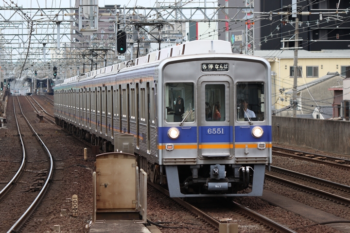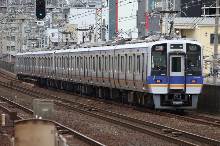 | 続いて5th CHAPTERでは天下茶屋駅7時51分発高野線各停なんば行き、天下茶屋駅7時53分発南海線特急サザンなんば行きの画像から御紹介します。当CHAPTERの注目は今のウチに撮りためしておきたい7100系、中でも7169Fは8月20日(火)から緑色の復刻デザインが施されています。 |