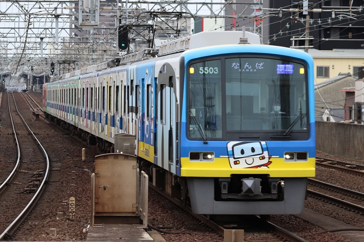 | 続いて4th CHAPTERでは新今宮駅7時35分発南海線普通和歌山市行き、天下茶屋駅7時37分発高野線各停なんば行きの画像から御紹介します。当CHAPTERの注目は今のウチに撮りためしておきたい6000系、残念ながらせんぼくん・鉄道むすめラッピング電車とかぶってしまいました。 |