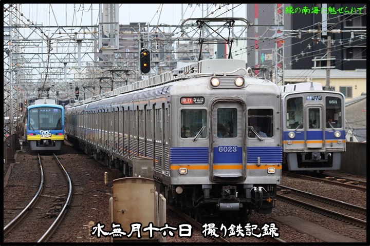 | 本年6月16日(日)の撮り鉄記録、最後に7th CHAPTERでは天下茶屋駅8時25分発高野線各停なんば行き、新今宮駅8時27分発南海線区間急行和歌山市行きの画像から御紹介します。当CHAPTERの注目は当CHAPTERの注目は「お銀」こと復刻デザインの6000系6001F、気付けば「お銀」が運行開始して1年が経過しました。 |