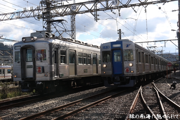 | 再び橋本方へ行くがものすごい人の山。そして有志の方のヘッドマークが掲出されるまでは良かったですが泉北3000系を撮影していると「ピピー」って笛を鳴らされる始末…。 |