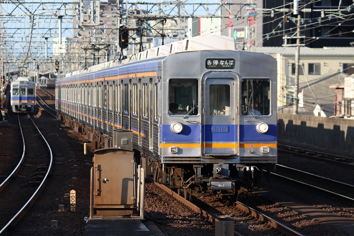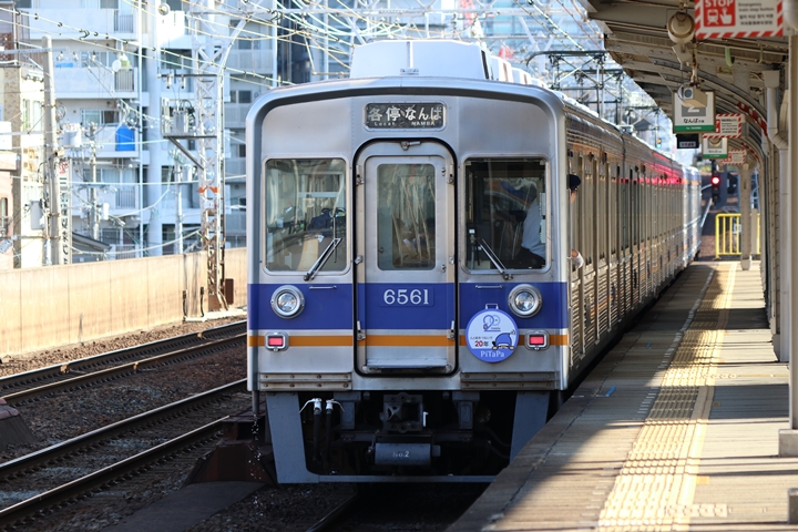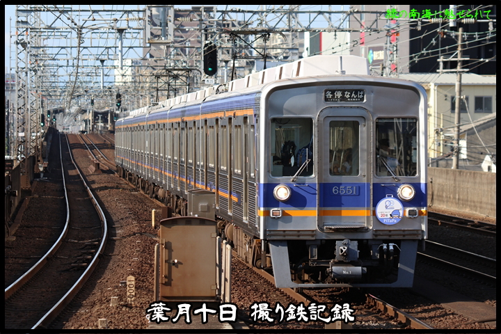 | 続いて3rd CHAPTERでは新今宮駅6時49分発南海線普通羽倉崎行き、天下茶屋駅6時50分発高野線各停なんば行きの画像から御紹介します。当CHAPTERの注目はPiTaPa20周年記念ヘッドマークを掲出した6551F、この日はこのヘッドマークを撮影するのが一番の目的でした。 |