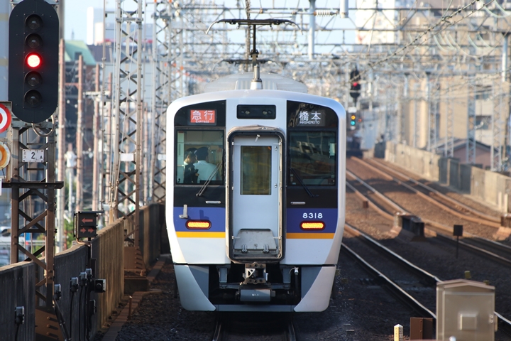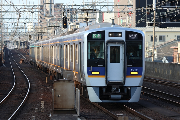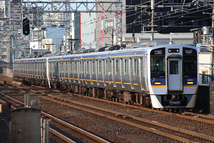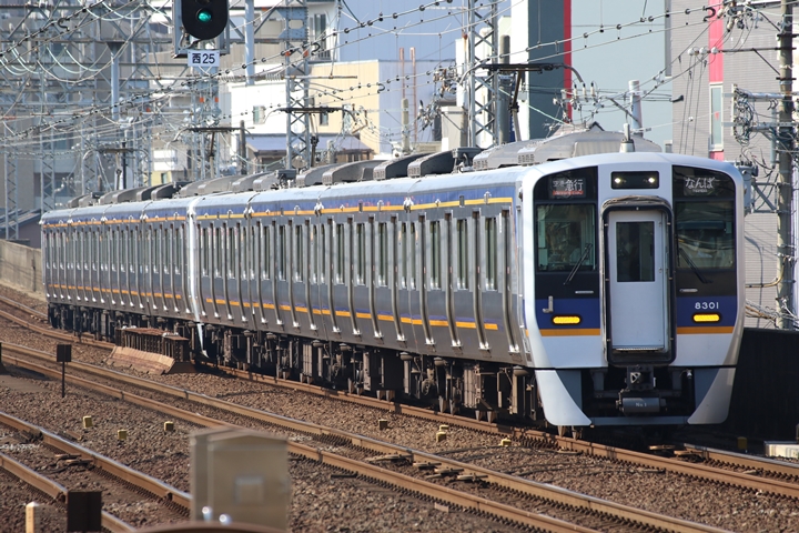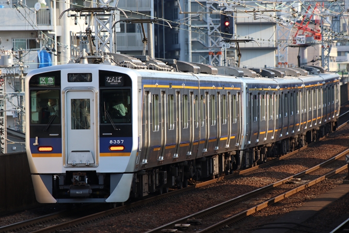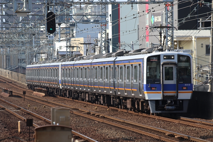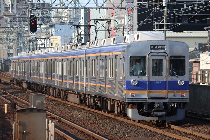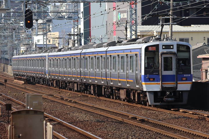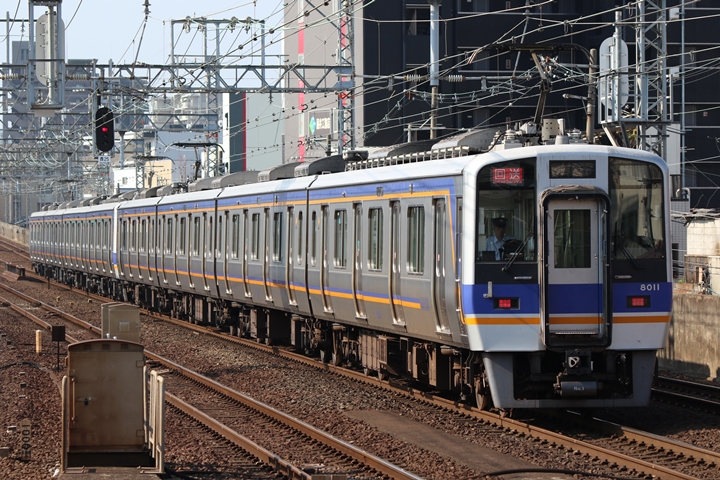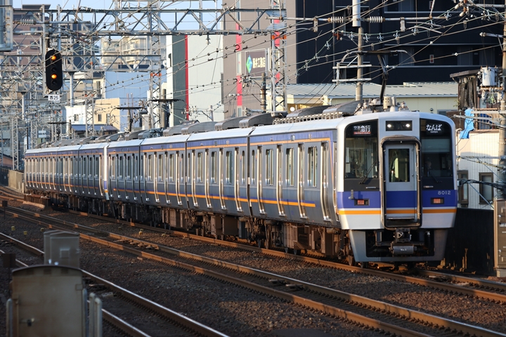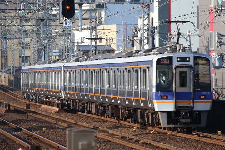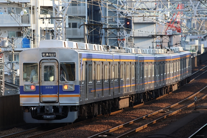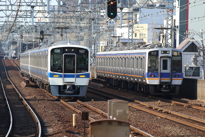 | 続いて3rd CHAPTERでは天下茶屋駅7時4分発高野線特急泉北ライナーなんば行き、新今宮駅7時4分発南海線急行和歌山市行きの画像から御紹介します。当CHAPTERの注目は平日ダイヤ1本のみの存在である8連の特急りんかん、この日は31001F+30003Fがやって来ました。 |