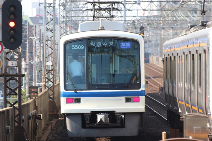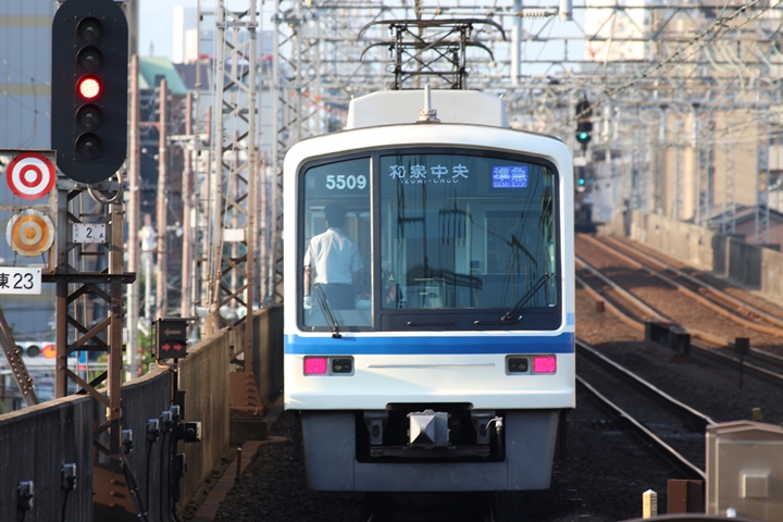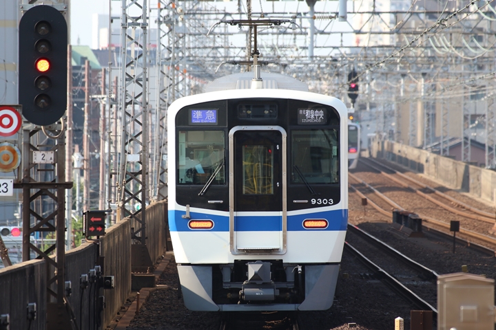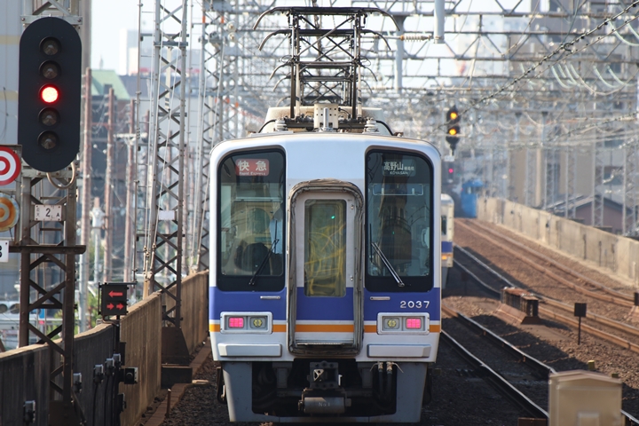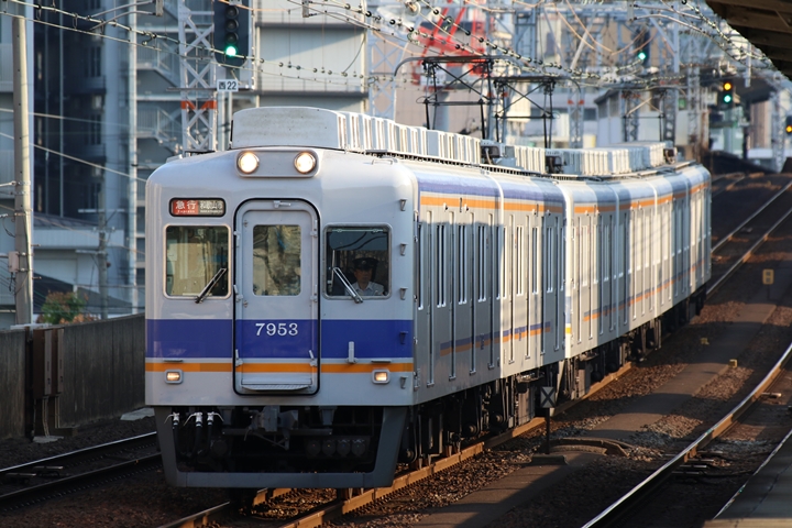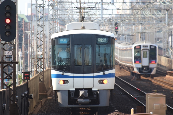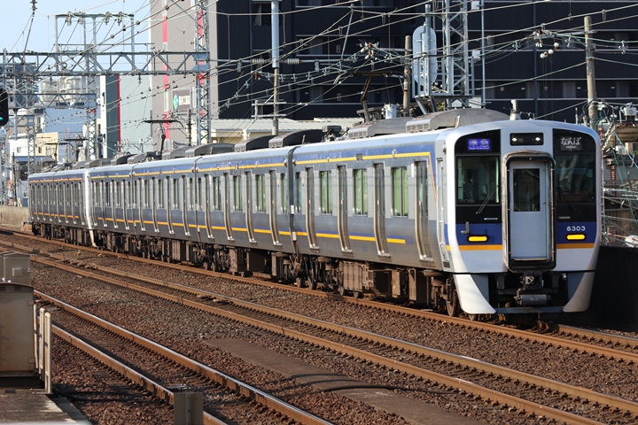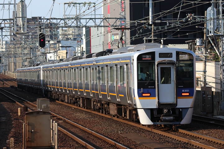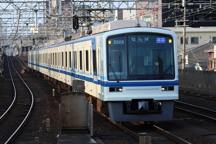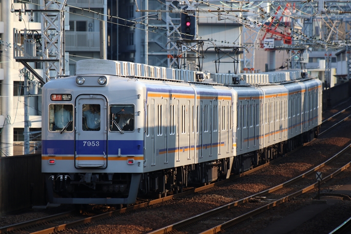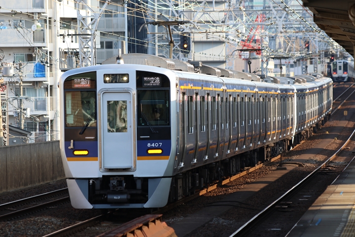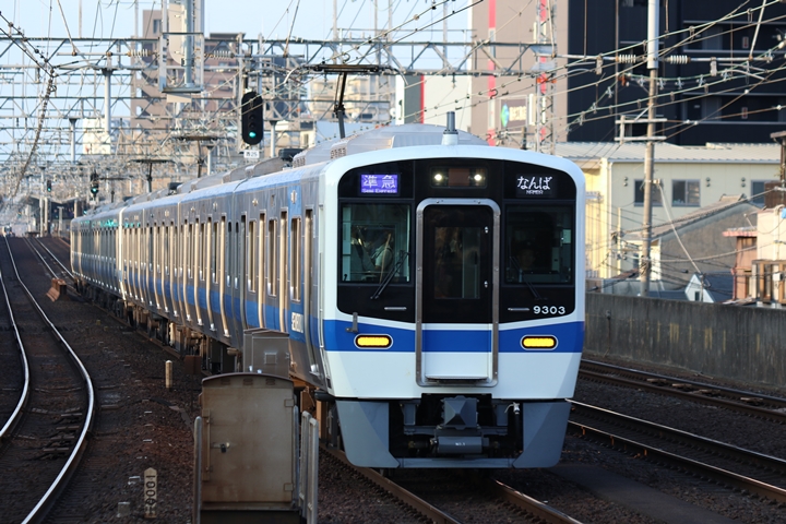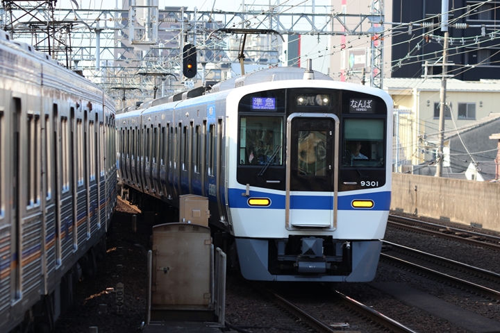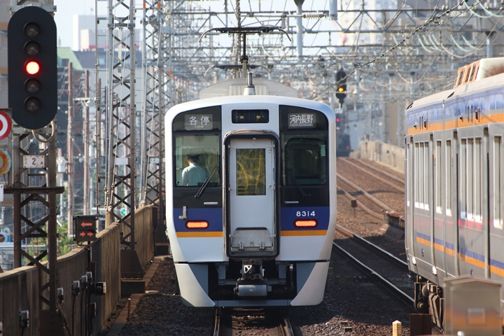 | 続いて3rd CHAPTERでは天下茶屋駅7時4分発高野線特急泉北ライナーなんば行き、新今宮駅7時4分発南海線急行和歌山市行きの画像から御紹介します。当CHAPTERの注目は平日ダイヤ1本のみの存在である8連の特急りんかん、この日は31001F+30003Fがやって来ました。 |