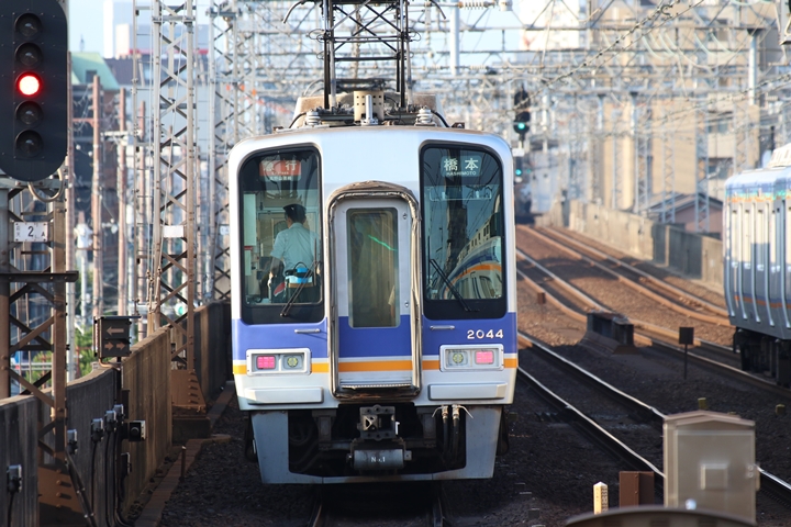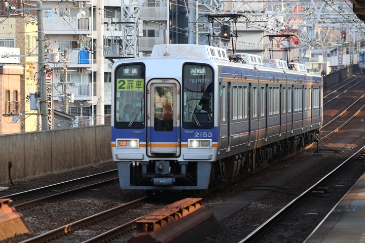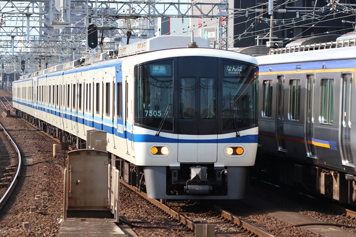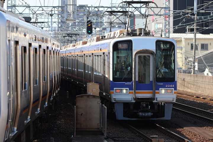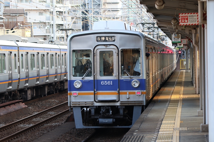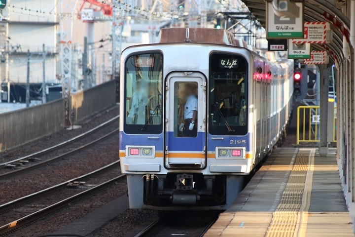 | 続いて2nd CHAPTERでは新今宮駅6時42分発高野線準急行和泉中央行き、新今宮駅6時45分発南海線普通和歌山市行きの画像から御紹介します。当CHAPTERの注目は南海線2000系、先頭の「2扉車」の表示も既に過去のモノになってしまいました。 |