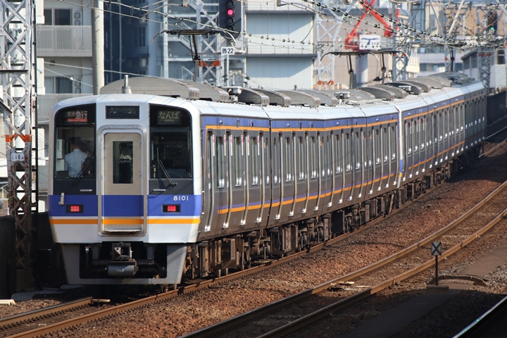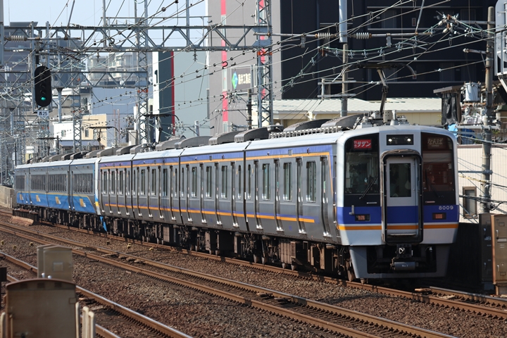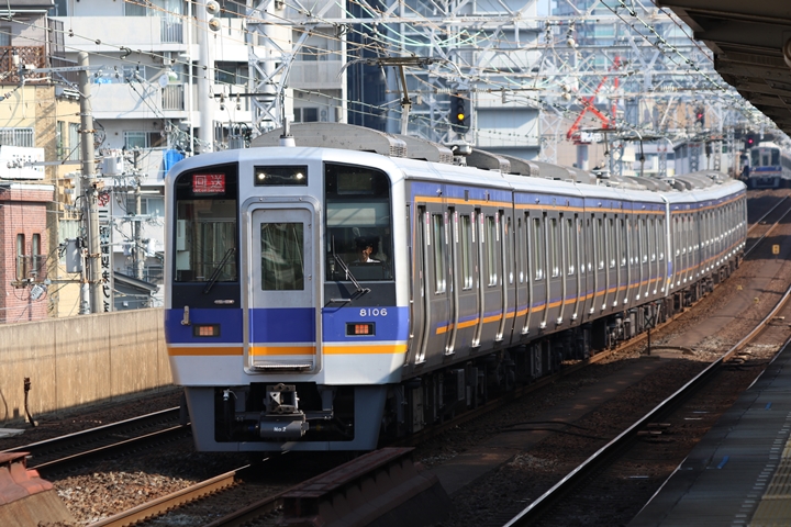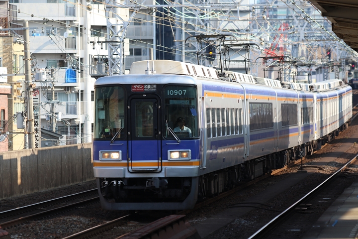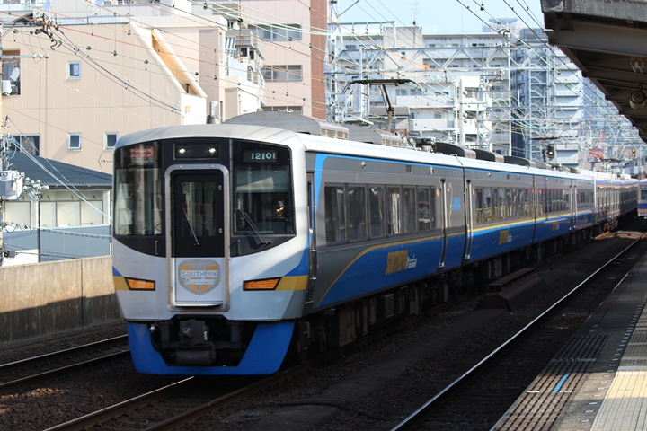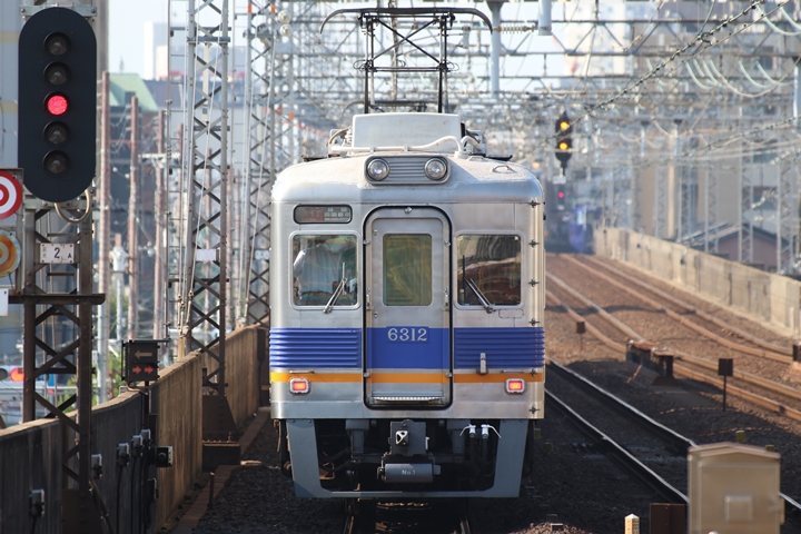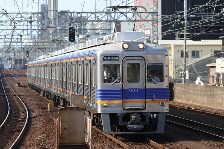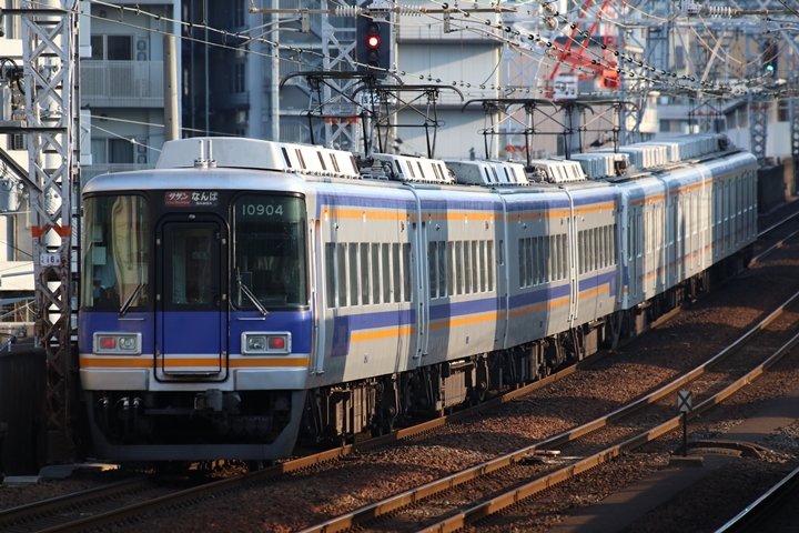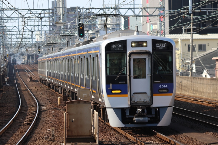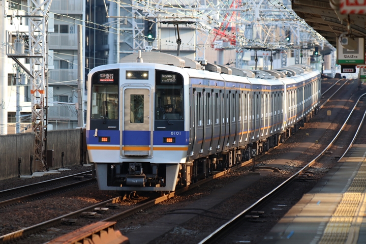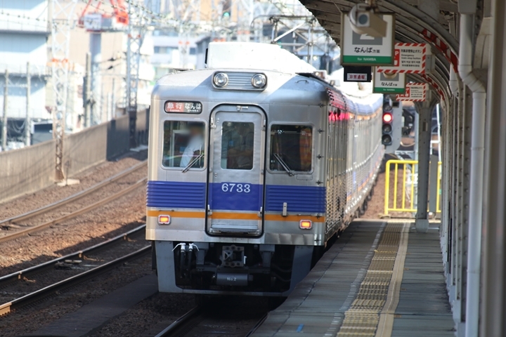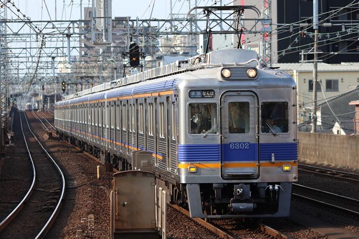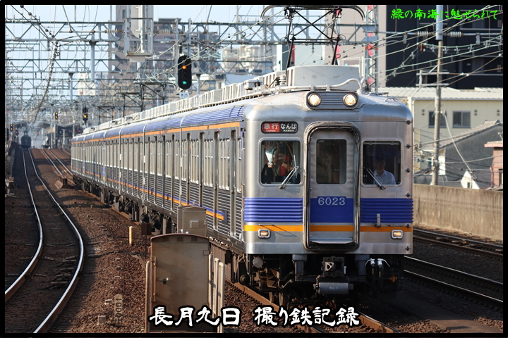 | 最後に9th CHAPTERでは新今宮駅8時50分発南海線空港急行関西空港行き、新今宮駅8時50分発高野線準急行和泉中央行きの画像から御紹介します。当CHAPTERの注目は2nd CHAPTERで御紹介した6001Fこと「お銀」、ただ残念ながら下り各停とかぶってしまったのでケツ打ちを試みました。 |