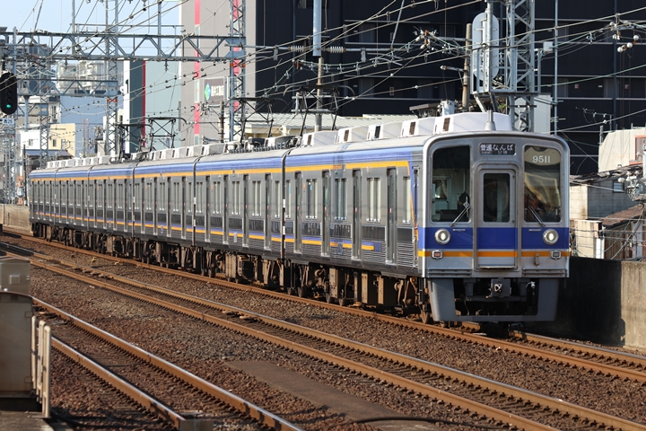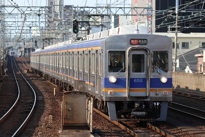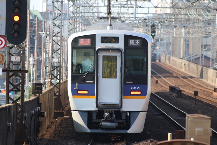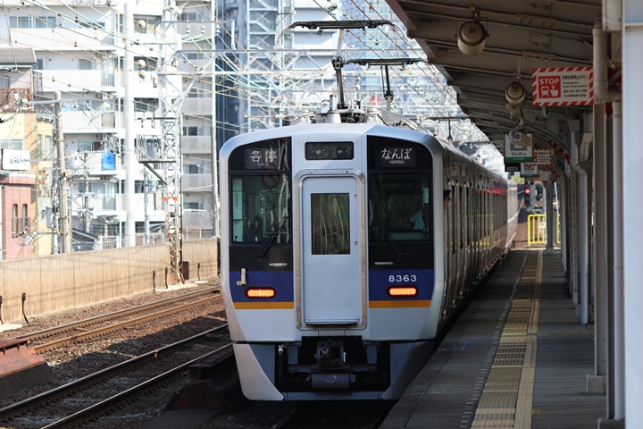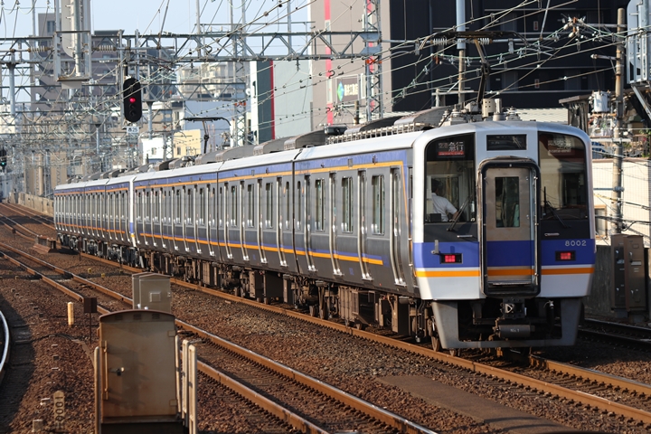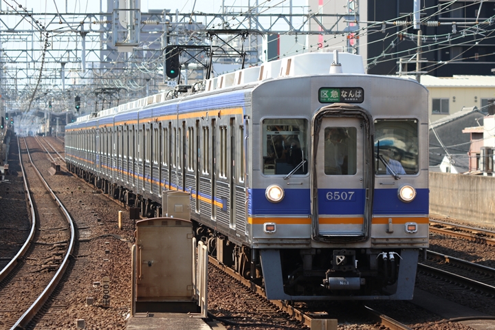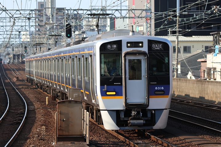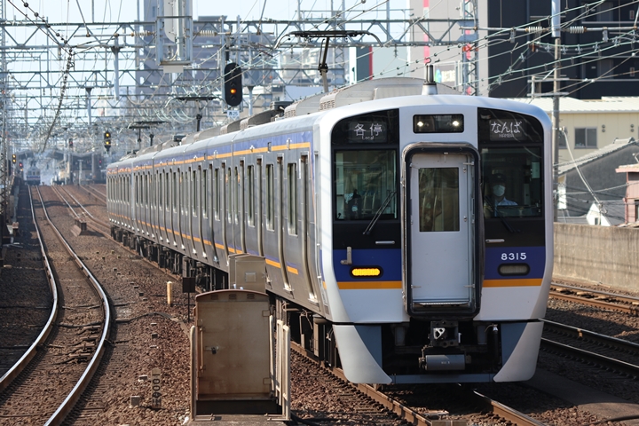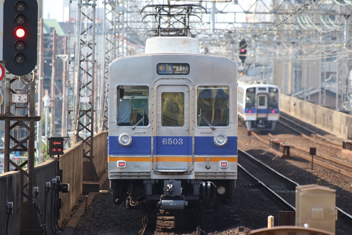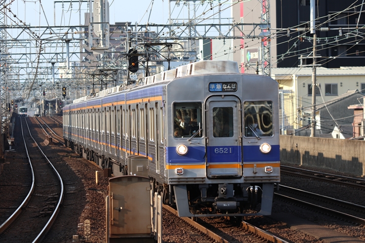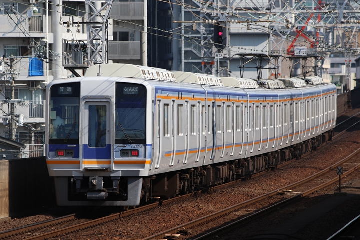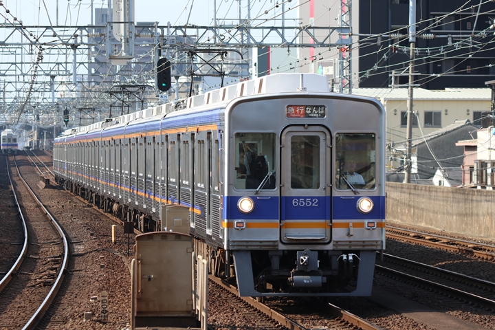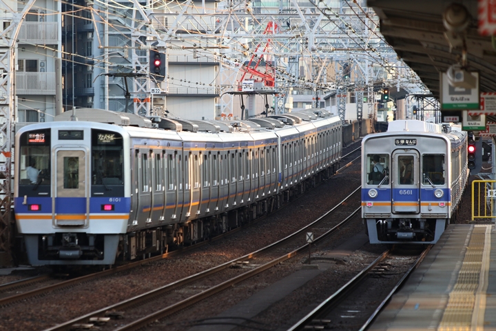 | 最後に9th CHAPTERでは新今宮駅8時50分発南海線空港急行関西空港行き、新今宮駅8時50分発高野線準急行和泉中央行きの画像から御紹介します。当CHAPTERの注目は2nd CHAPTERで御紹介した6001Fこと「お銀」、ただ残念ながら下り各停とかぶってしまったのでケツ打ちを試みました。 |