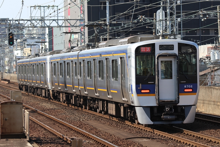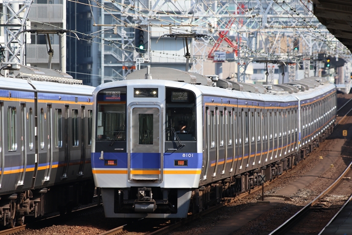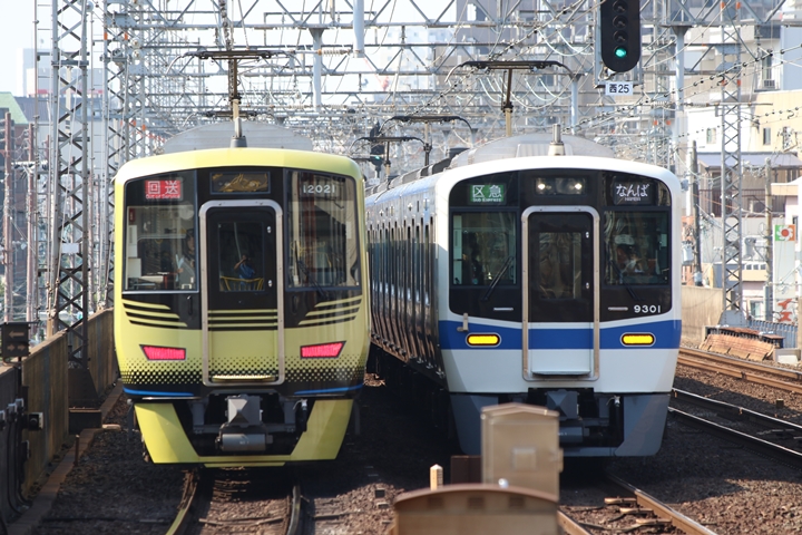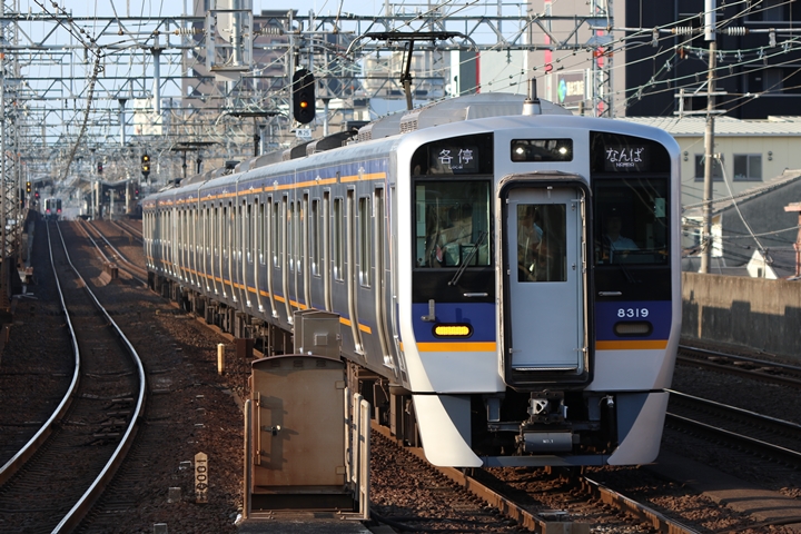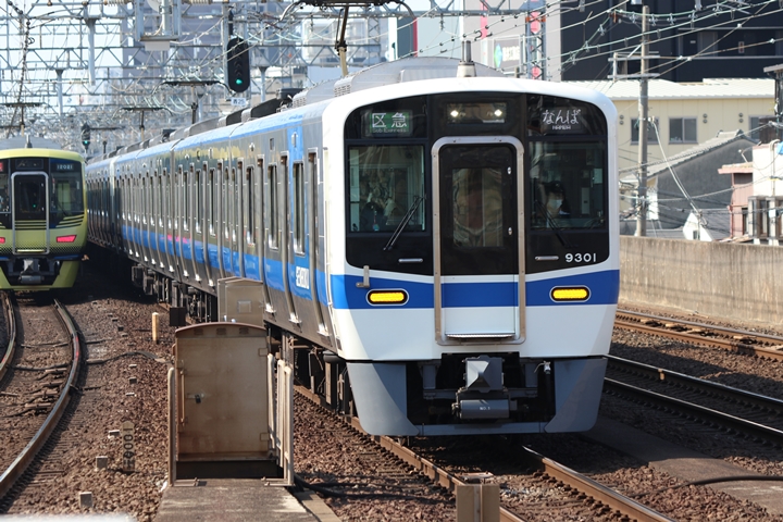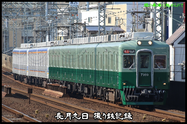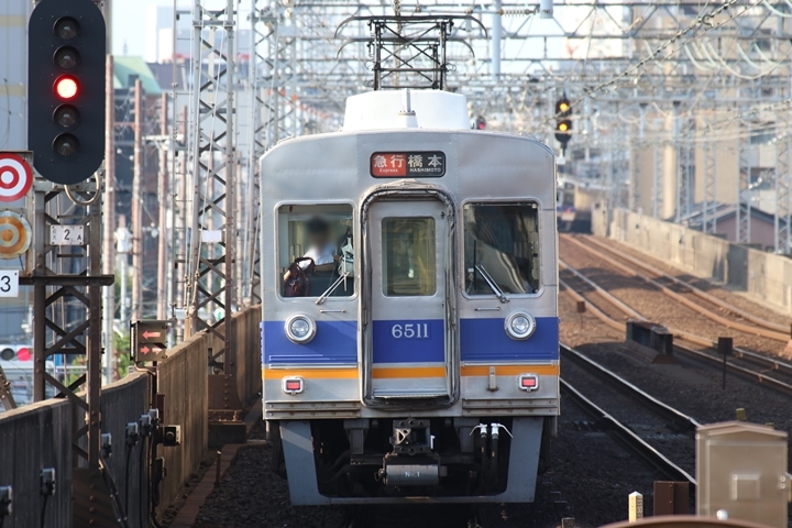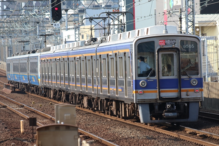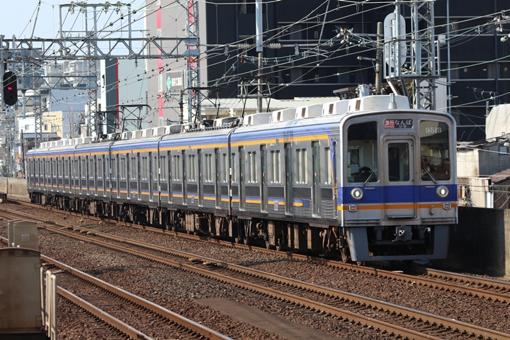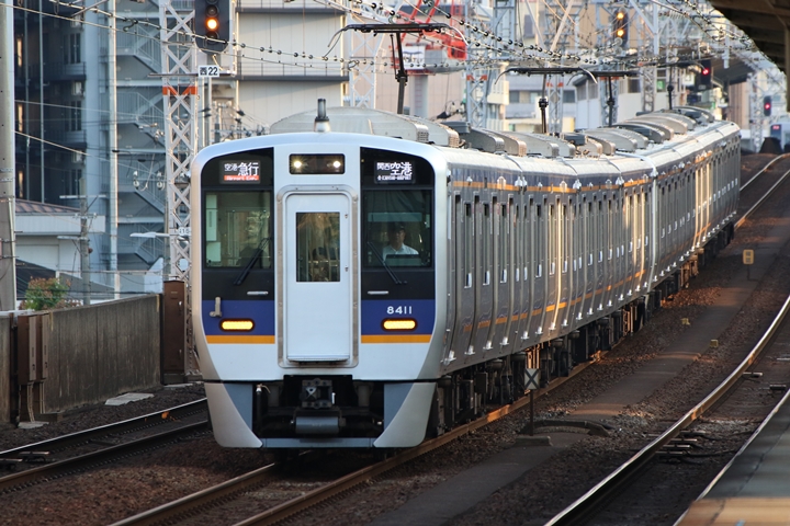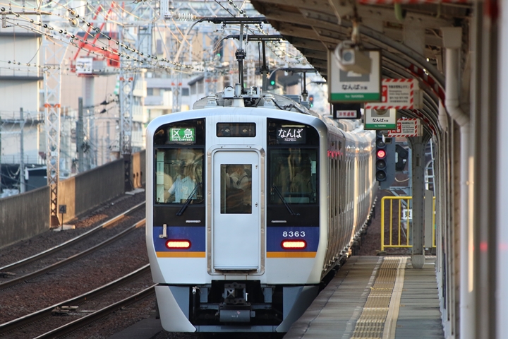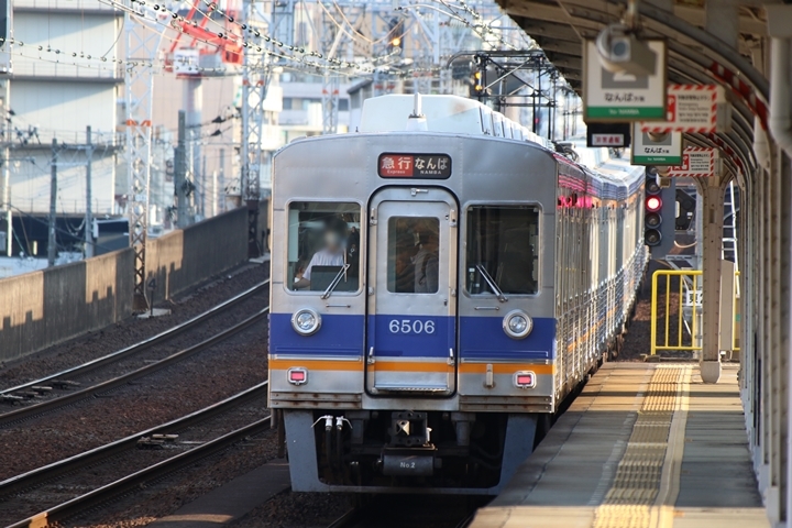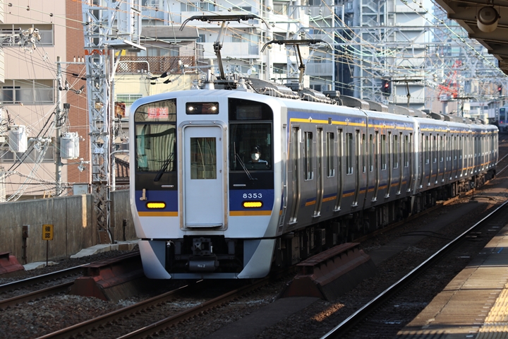 | 最後に9th CHAPTERでは新今宮駅8時50分発南海線空港急行関西空港行き、新今宮駅8時50分発高野線準急行和泉中央行きの画像から御紹介します。当CHAPTERの注目は2nd CHAPTERで御紹介した6001Fこと「お銀」、ただ残念ながら下り各停とかぶってしまったのでケツ打ちを試みました。 |