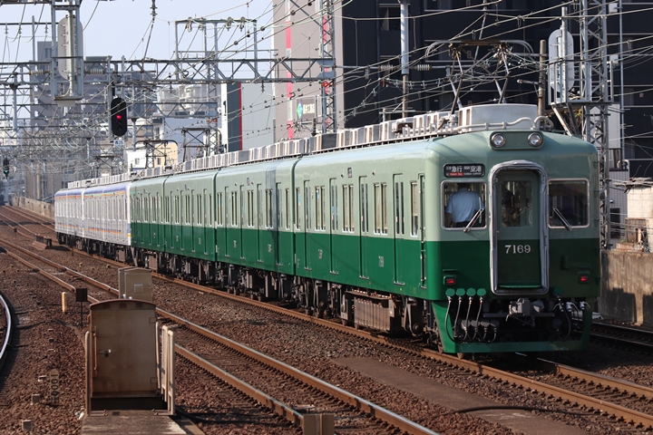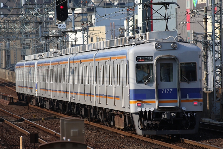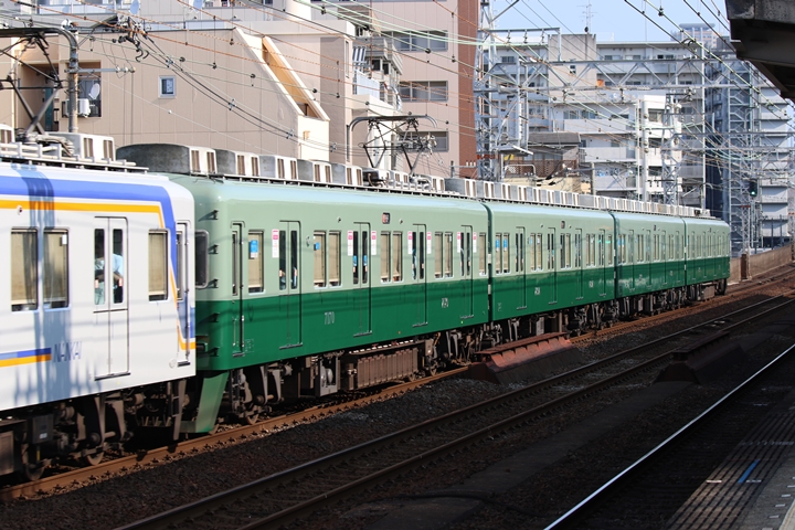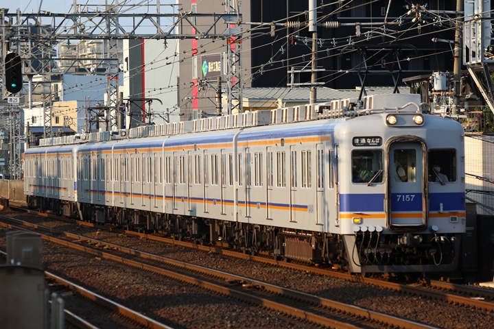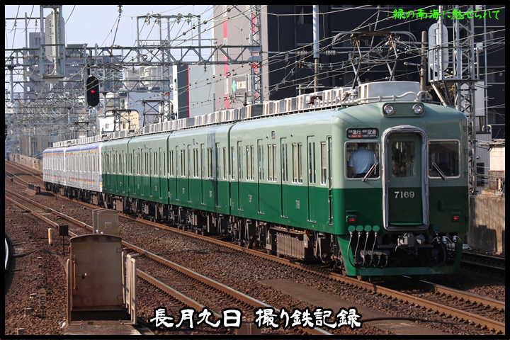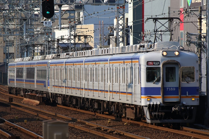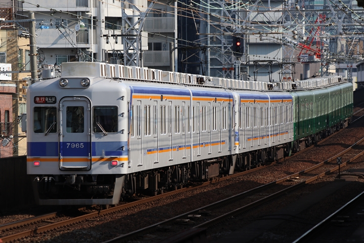 | 続いて6th CHAPTERでは天下茶屋駅8時2分発高野線特急泉北ライナーなんば行き、天下茶屋駅8時4分発南海線急行なんば行きの画像から御紹介します。当CHAPTERの注目は7169Fの7100系復元デザイン車両こと「緑の南海」、ちょうど順光だったので大勢の人が撮影にやってきました。 |