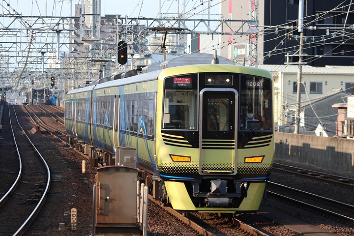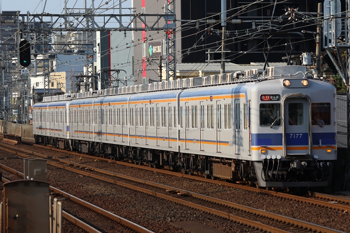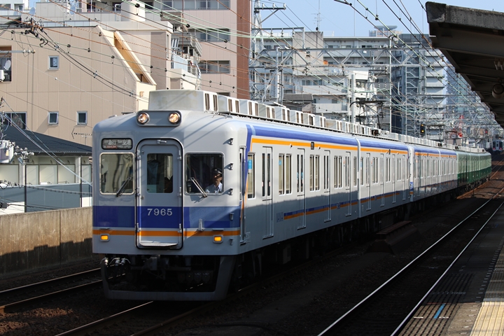 | 続いて7th CHAPTERでは新今宮駅8時20分発南海線空港急行関西空港行き、新今宮駅8時20分発高野線特急泉北ライナー和泉中央行きの画像から御紹介します。当CHAPTERの注目は6th CHAPTERで御紹介した7169Fの7100系復元デザイン車両こと「緑の南海」、折り返し関西空港へ向けて出発しました。 |