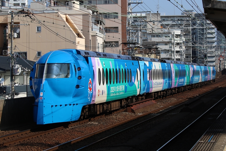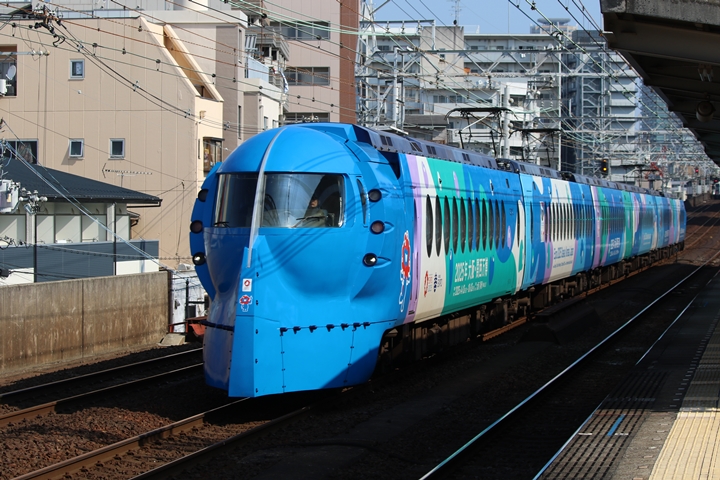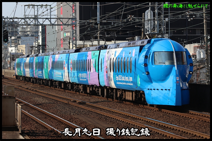 | 続いて8th CHAPTERでは天下茶屋駅8時35分発南海線急行なんば行き、天下茶屋駅8時38分発高野線急行なんば行きの画像から御紹介します。当CHAPTERの注目は2nd CHAPTERで御紹介した大阪関西万博ラッピングラピート、折り返し関西空港から戻ってきました。 |
