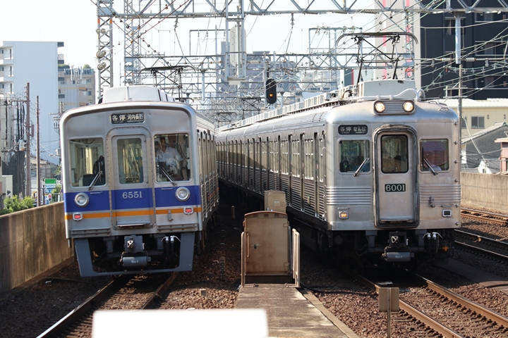 | 弊ブログにおける「撮り鉄記録」も早くも76回目となります。この日はものすごく暑い中、この日はいつもの萩之茶屋駅で平日ダイヤを撮り鉄。まず1st CHAPTERでは天下茶屋駅6時24分発南海線空港急行なんば行き、萩ノ茶屋駅6時26分発高野線各停なんば行きの画像から御紹介します。当CHAPTERの注目は当CHAPTERの注目は今のウチに撮りためしておきたい6000系、6001Fこと「お銀」が朝日に照らされながらやって来ました。 |