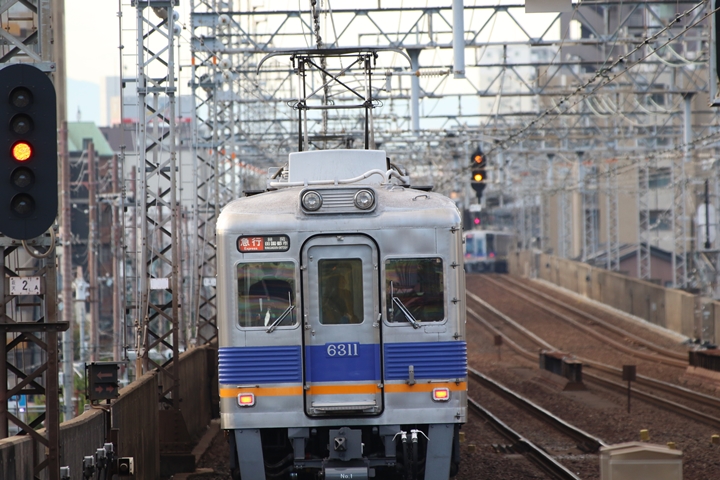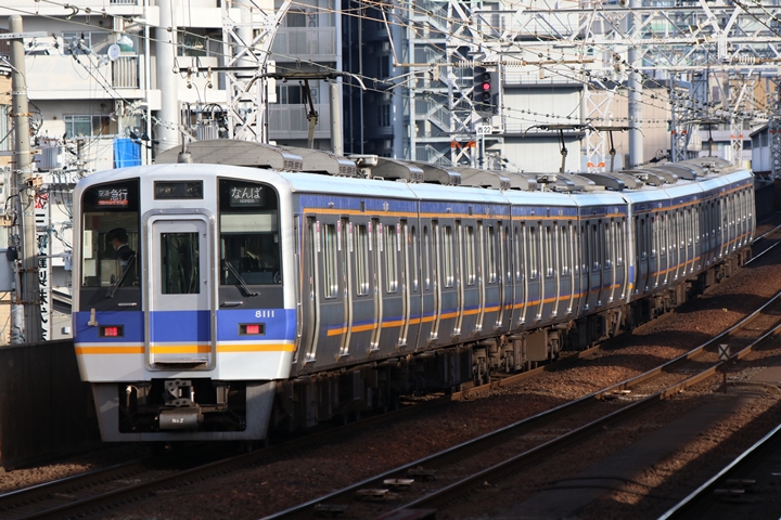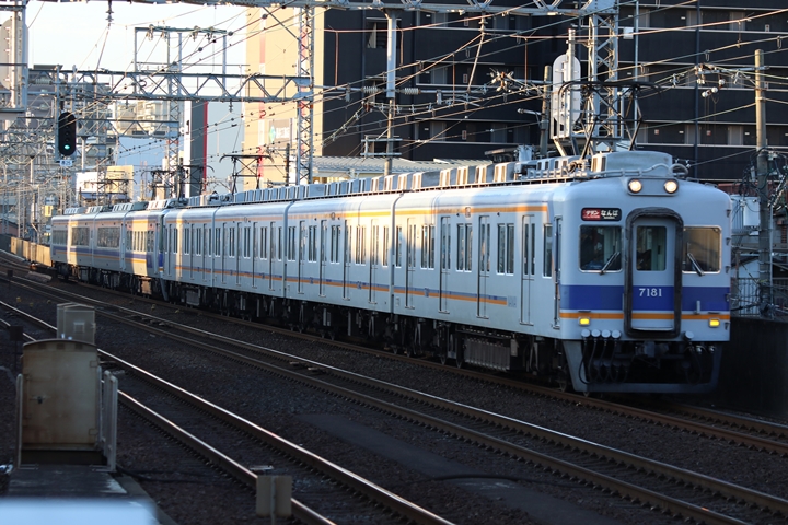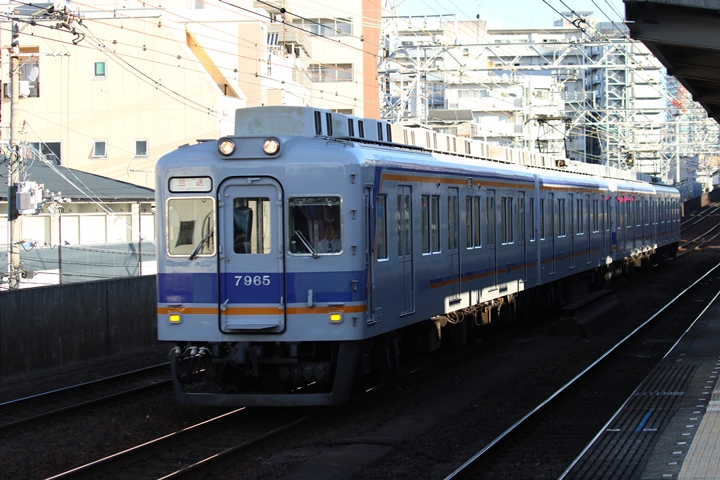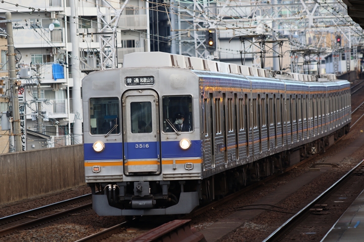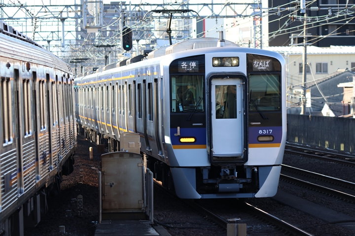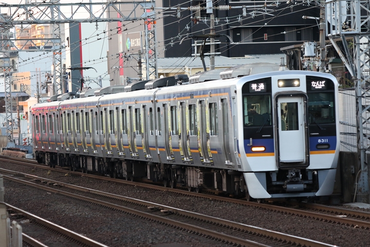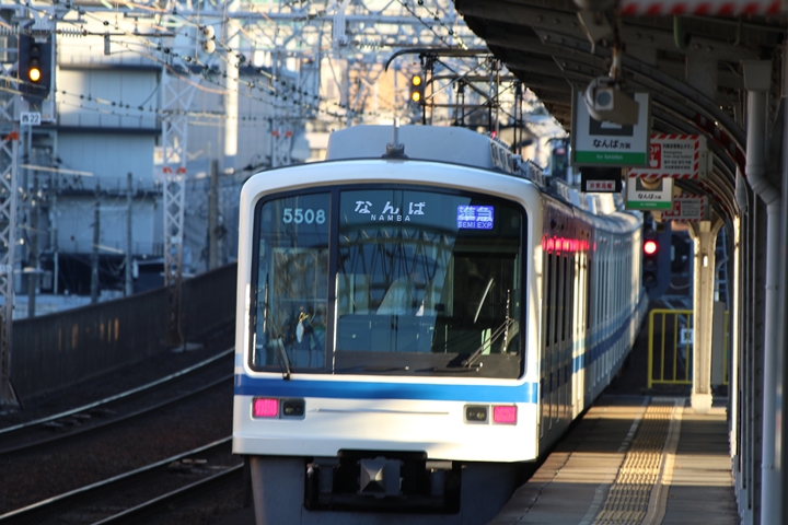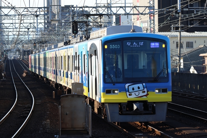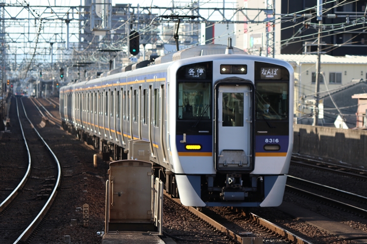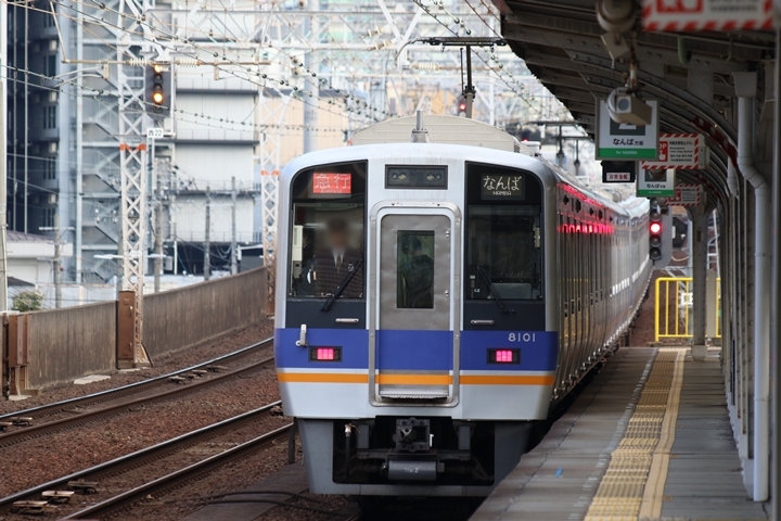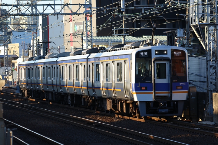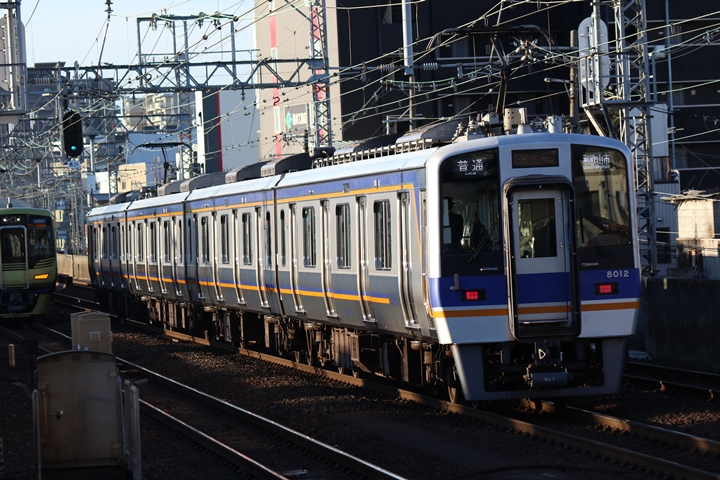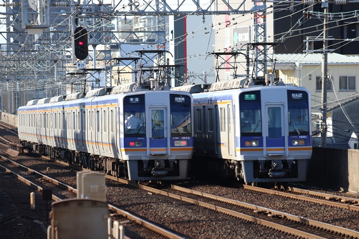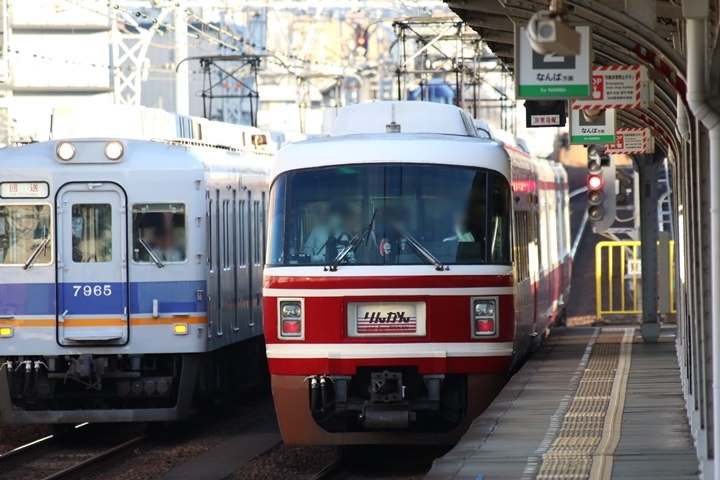| 最後に6th CHAPTERでは新今宮駅8時10分発南海線回送車、天下茶屋駅8時9分発高野線特急泉北ライナーなんば行きの画像から御紹介します。当CHAPTERの注目は11000系による泉北ライナー、かつては金色のラッピングが施されていましたが残念ながら最近はラッピングが行われていません。 |