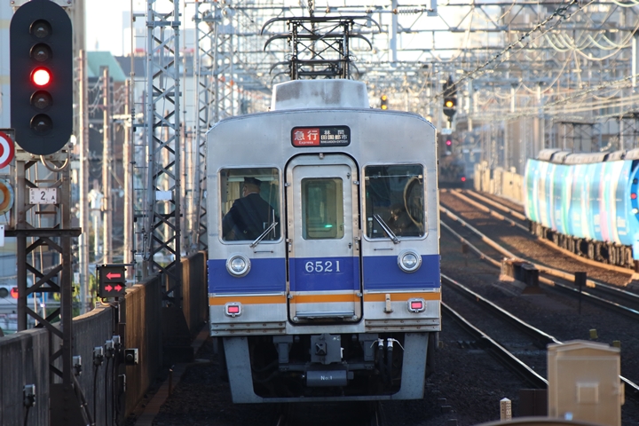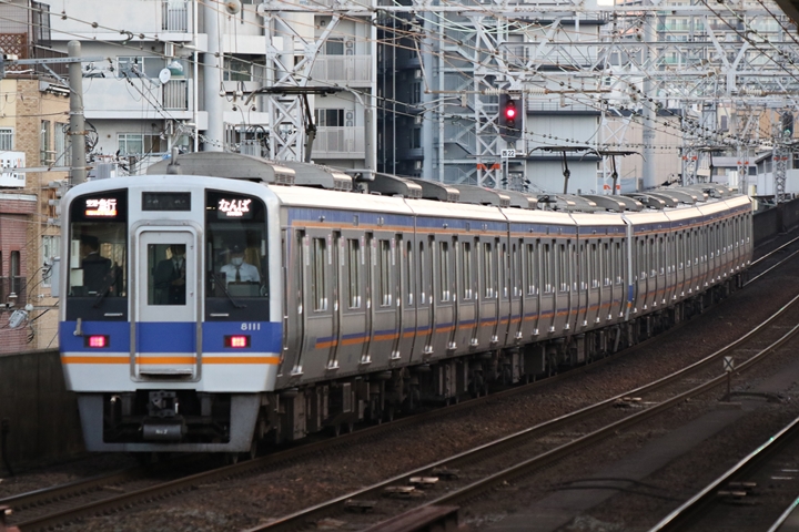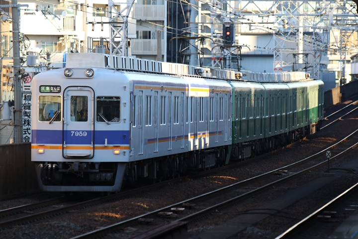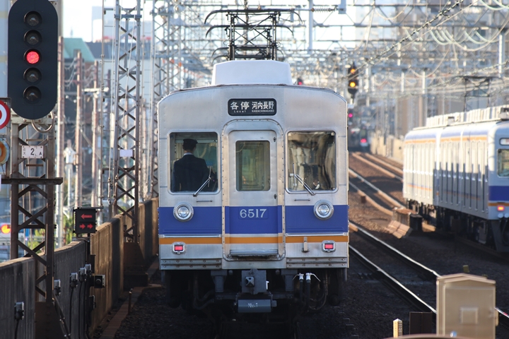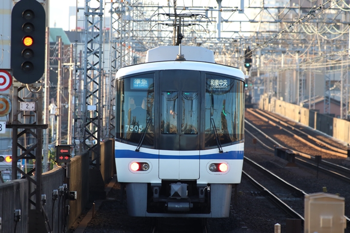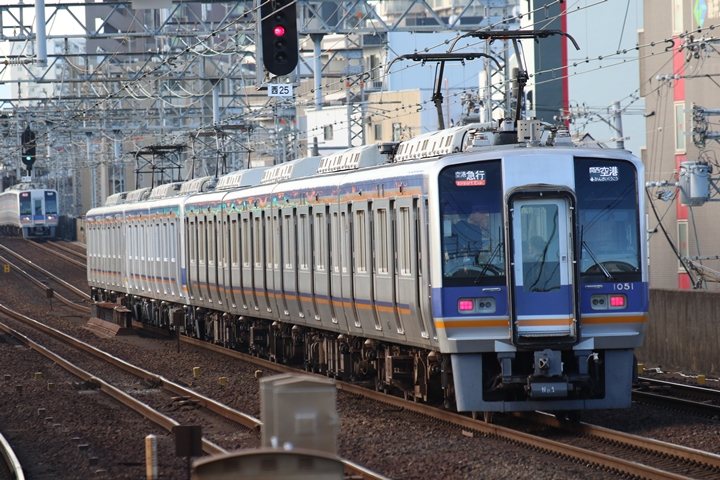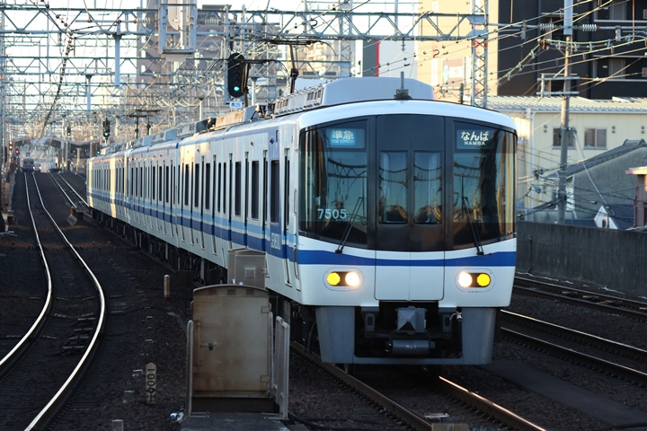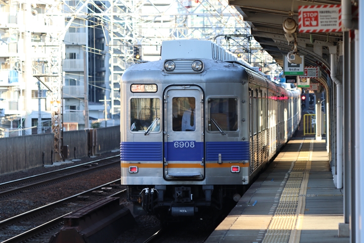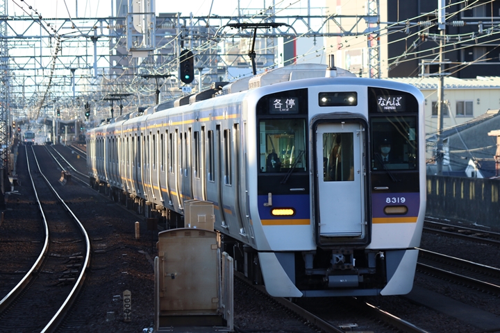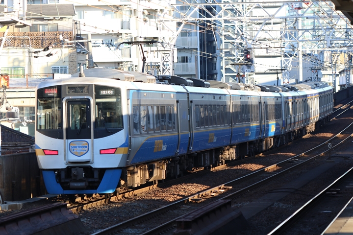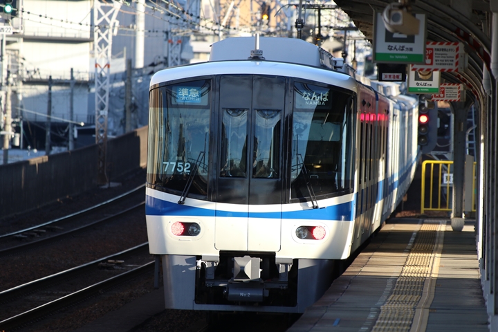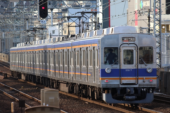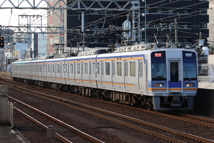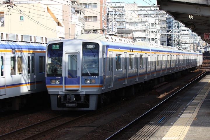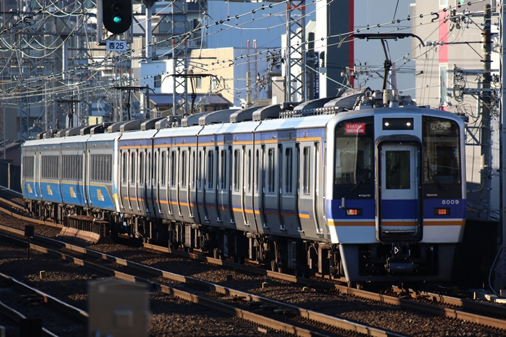 | 最後に6th CHAPTERでは新今宮駅8時10分発南海線回送車、天下茶屋駅8時9分発高野線特急泉北ライナーなんば行きの画像から御紹介します。当CHAPTERの注目は11000系による泉北ライナー、かつては金色のラッピングが施されていましたが残念ながら最近はラッピングが行われていません。 |
