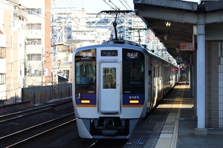 | 続いて5th CHAPTERでは天下茶屋駅7時51分発高野線各停なんば行き、天下茶屋駅7時53分発南海線特急サザンなんば行きの画像から御紹介します。当CHAPTERの注目は南海線から高野線へ転属し10月12日より運行開始した高野線8000系、この日は8002F+8001Fがやって来ました。 |