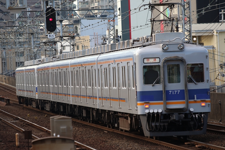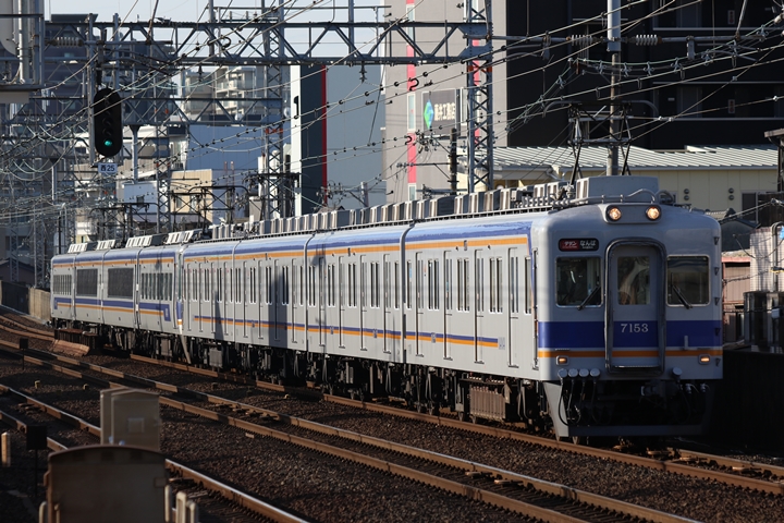 | 続いて3rd CHAPTERでは天下茶屋駅7時15分発南海線回送車、天下茶屋駅7時15分発高野線準急行なんば行きの画像から御紹介します。当CHAPTERの注目は7169Fの7100系復元デザイン車両こと「緑の南海」、残念ながらビルの影が側面に入ってしまいましたがとりあえず7169Fがやって来てくれただけでも良かったです。 |