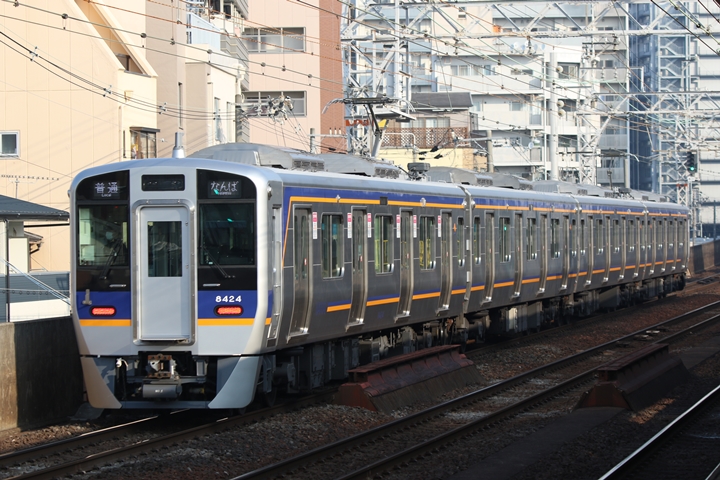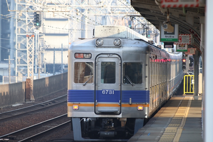 | 最後に4th CHAPTERでは天下茶屋駅8時46分発南海線急行なんば行き、新今宮駅8時50分発高野線区間急行林間田園都市行きの画像から御紹介します。当CHAPTERの注目は今のウチに撮りためしておきたい7100系、普通関西空港行きの行き先案内幕でやって来ました。 |