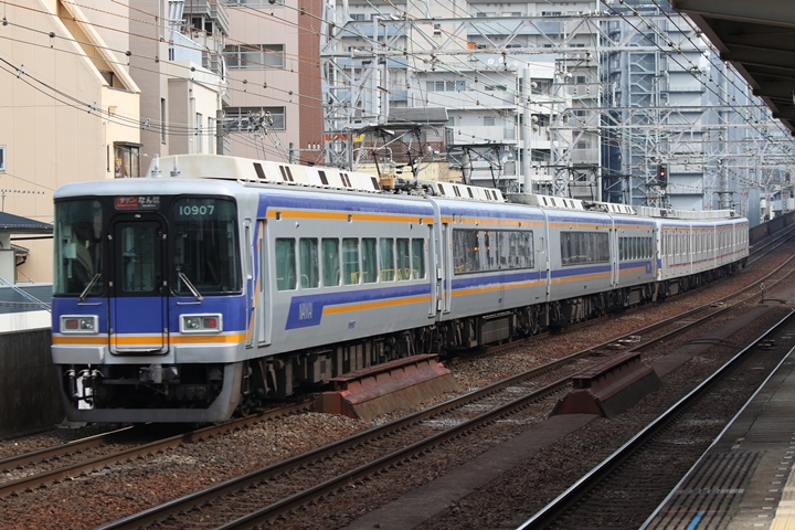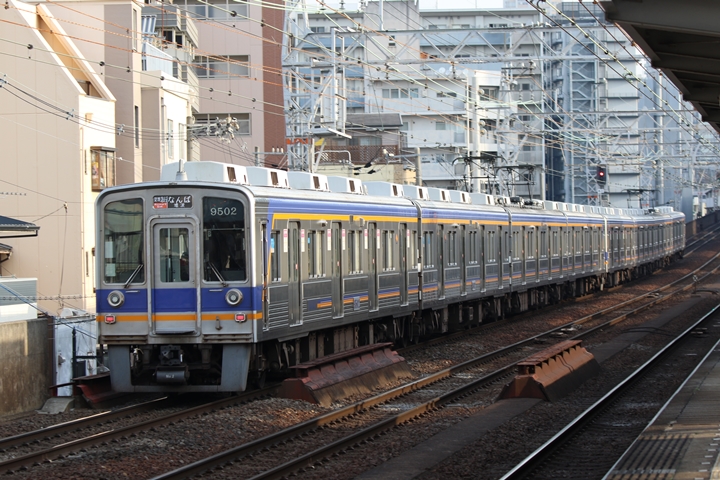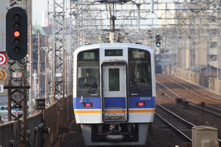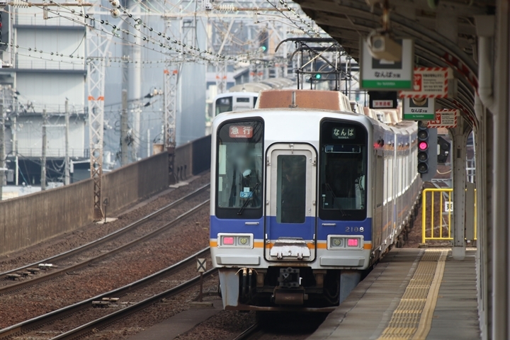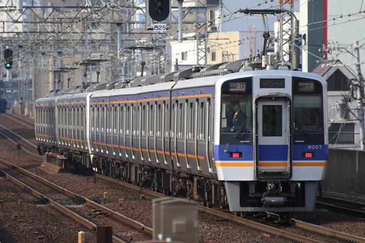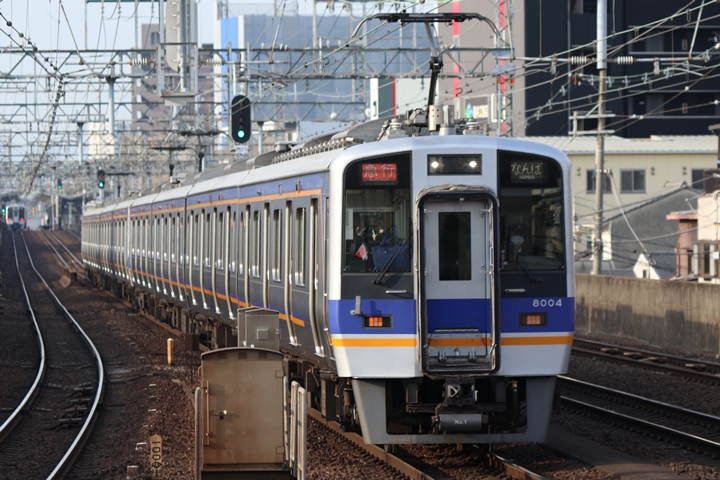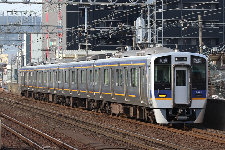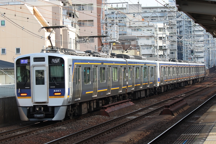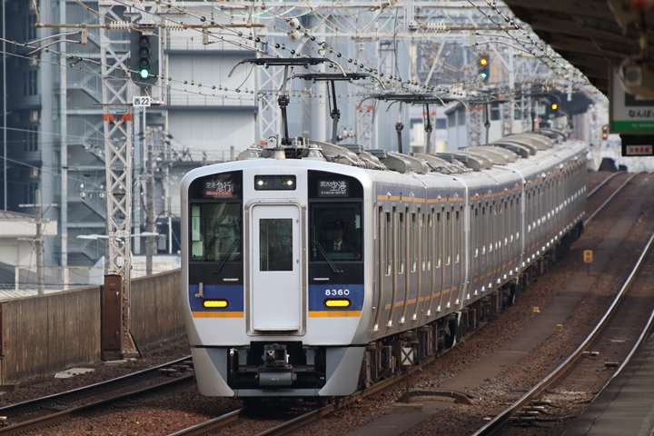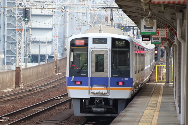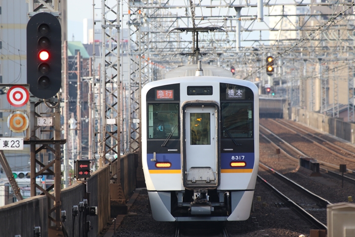 | 続いて7th CHAPTERでは新今宮駅8時10分発高野線準急行和泉中央行き、天下茶屋駅8時12分発南海線空港急行なんば行きの画像から御紹介します。当CHAPTERの注目は南海線から高野線へ転属した8000系、約半年が経過しそろそろ見慣れてきました。 |