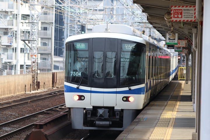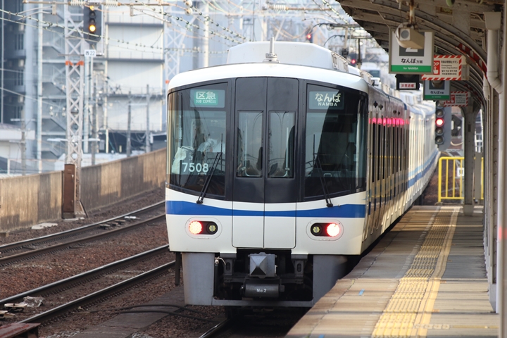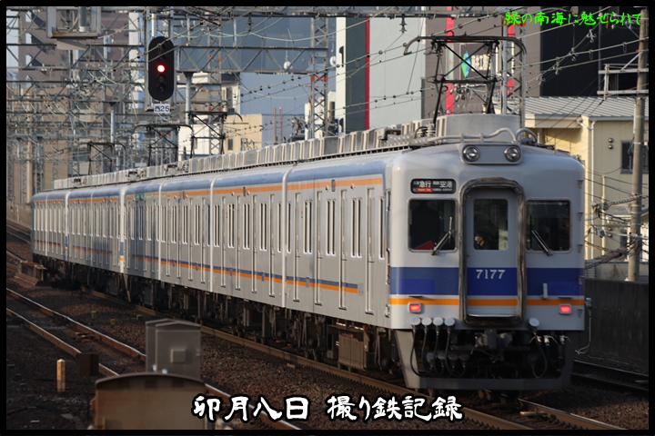 | 続いて2nd CHAPTERでは新今宮駅6時47分発南海線回送車、天下茶屋駅6時48分発高野線各停なんば行きの画像から御紹介します。当CHAPTERの注目は今のウチに撮りためしておきたい7100系、この日は久しぶりに8連の7100系がやって来ました。 |
