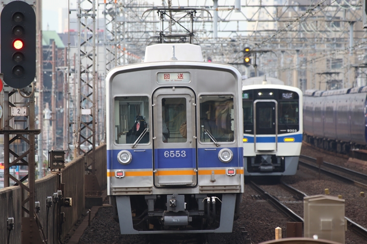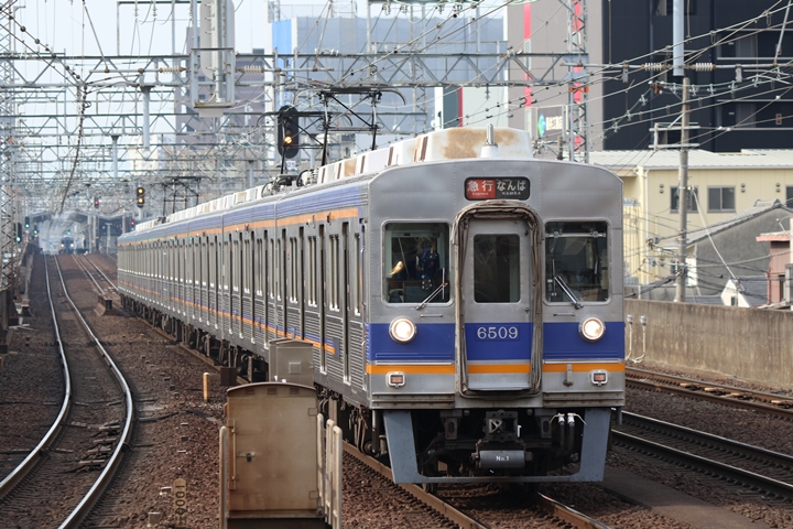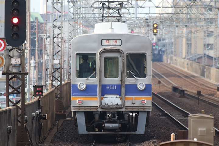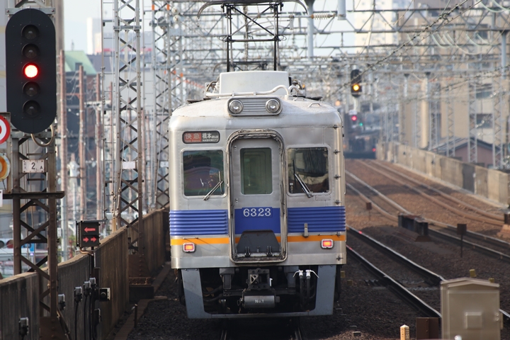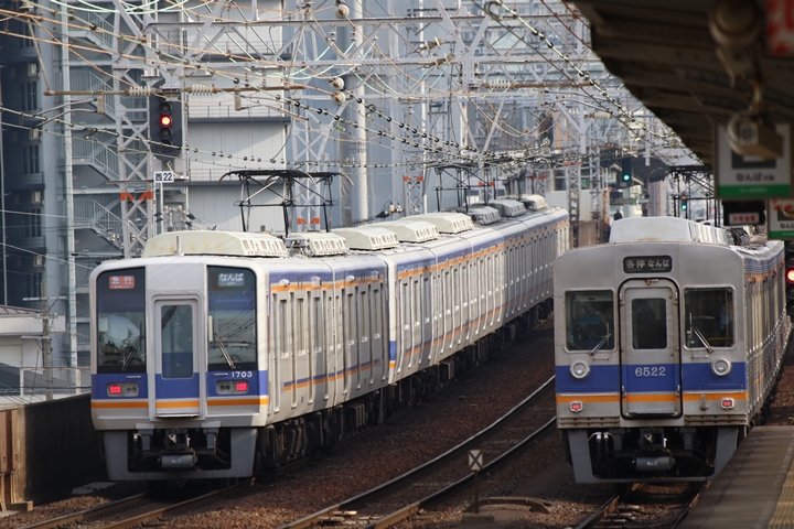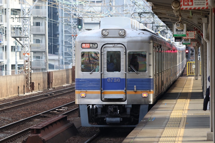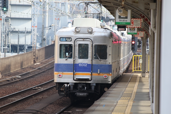 | 続いて4th CHAPTERでは新今宮駅7時23分発高野線各停林間田園都市行き、新今宮駅7時24分発南海線普通羽倉崎行きの画像から御紹介します。当CHAPTERの注目は創業140周年ヘッドマークを掲出した6001Fこと「お銀」、この日の目的の一つだったのでまずは一本目を捕獲できて良かったです。 |
