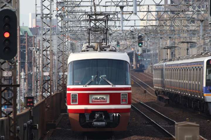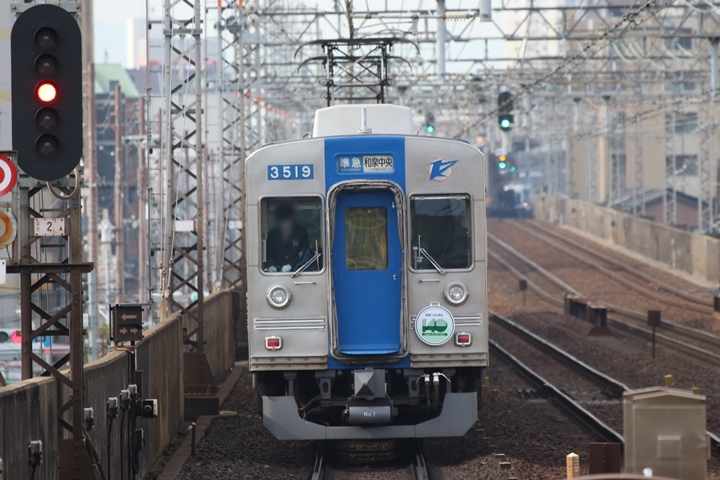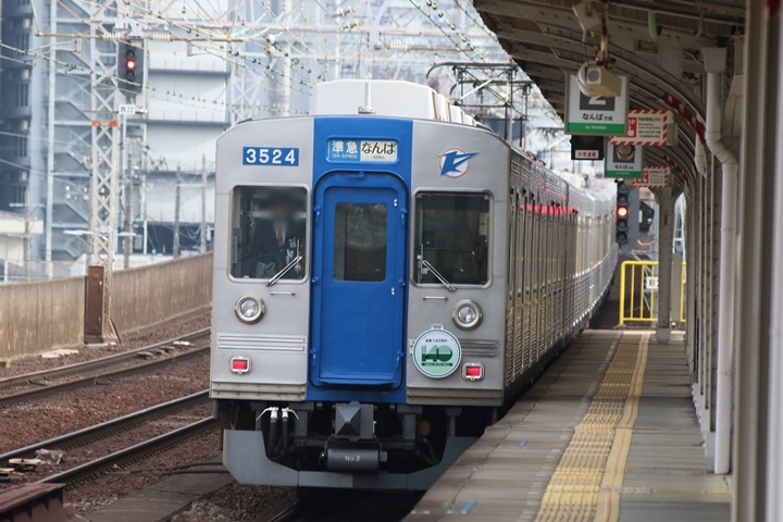 | 続いて6th CHAPTERでは天下茶屋駅7時54分発南海線空港急行なんば行き、天下茶屋駅7時54分発高野線急行なんば行きの画像から御紹介します。当CHAPTERの注目は創業140周年ヘッドマークを掲出した泉北3000系復刻デザイン車両、「お銀」に続いて二本目を捕獲できました。 |