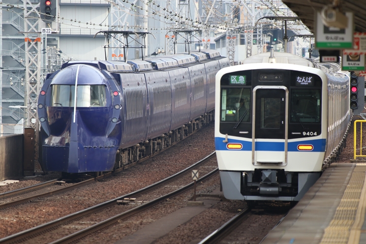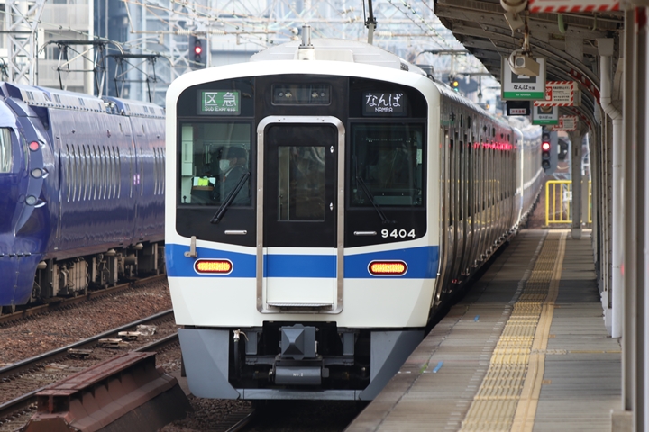 | 最後に9th CHAPTERでは新今宮駅8時32分発南海線特急ラピート関西空港行き、新今宮駅8時32分発高野線急行林間田園都市行きの画像から御紹介します。当CHAPTERの注目は7th CHAPTERで御紹介した8000系、折り返し千代田車庫へ向けて出発しました。 |