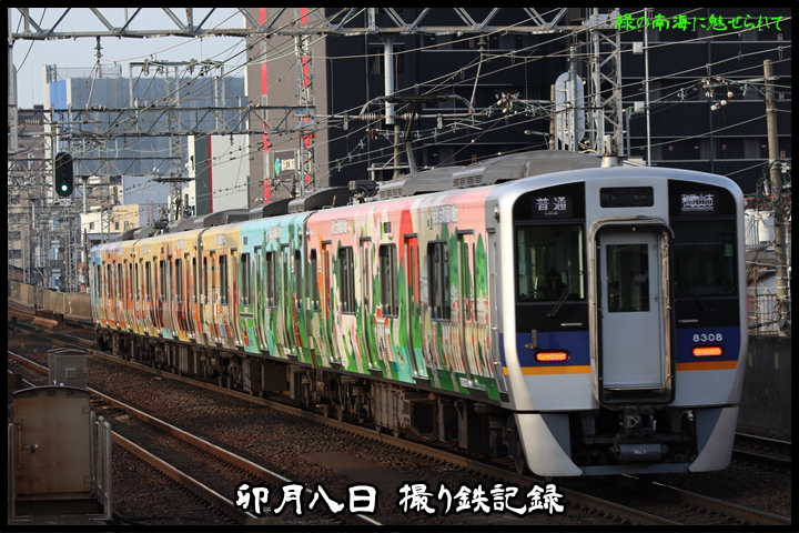 | 弊ブログにおける「撮り鉄記録」も早くも84回目となります。この日は久しぶりに平日ダイヤをいつもの萩之茶屋駅で撮り鉄。まず1st CHAPTERでは萩ノ茶屋駅6時26分発高野線各停なんば行き、新今宮駅6時29分発南海線空港急行関西空港行きの画像から御紹介します。当CHAPTERの注目は2月25日(火)から運行開始した「桃園メトロラッピングトレイン(8308F)」、朝日に照らされながら早速やって来ました。 |