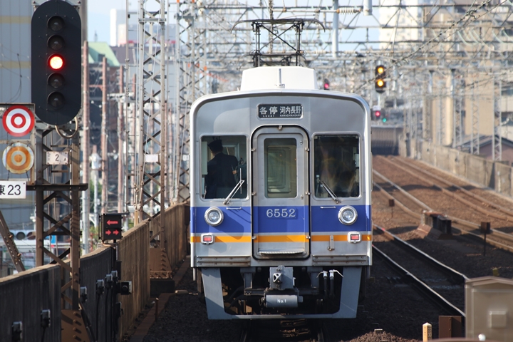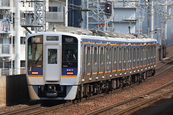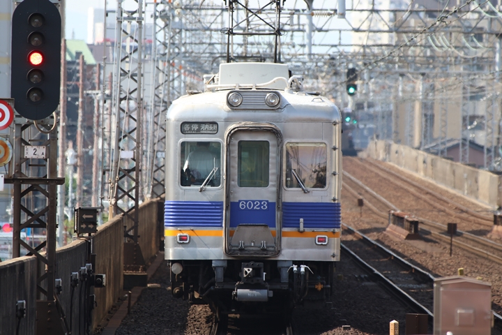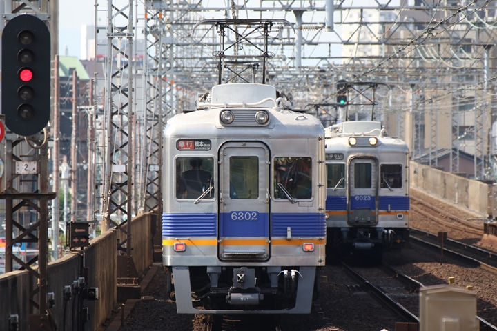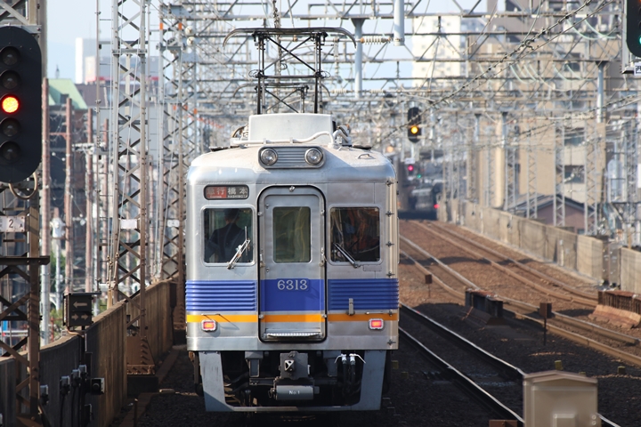 | 続いて4th CHAPTERでは新今宮駅7時42分発南海線空港急行関西空港行き、萩ノ茶屋駅7時43分発高野線各停河内長野行きの画像から御紹介します。当CHAPTERの注目は創業140周年ヘッドマークを掲出した6001Fこと「お銀」、まずは一本目を捕獲できて良かったです。 |