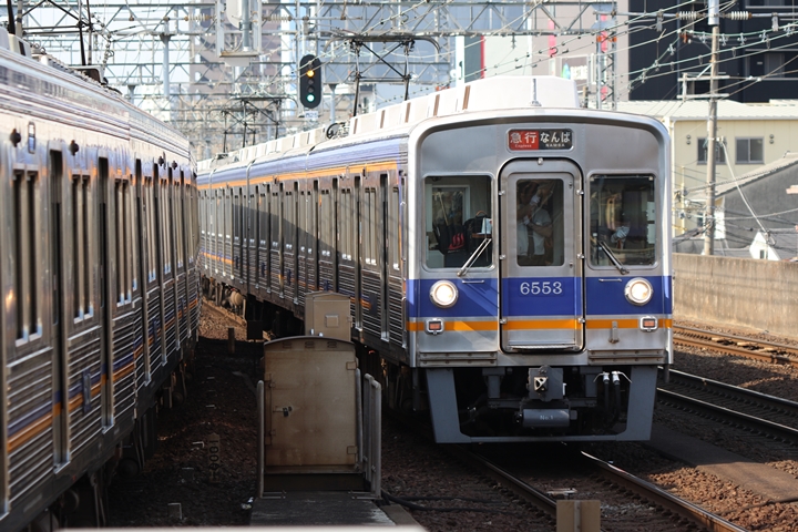 | 最後に6th CHAPTERでは天下茶屋駅8時39分発南海線特急ラピートなんば行き、天下茶屋駅8時41分発高野線準急行なんば行きの画像から御紹介します。当CHAPTERの注目は今のウチに撮りためしておきたい10000系、令和9年度末に新型サザンの導入が発表され10000系の引退のカウントダウンが始まりました。 |