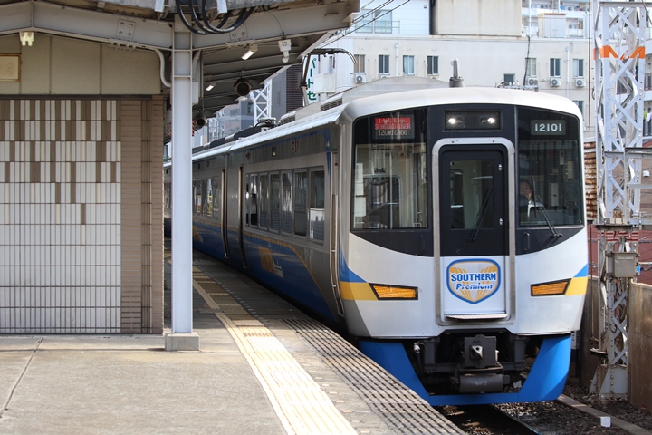 | 弊ブログにおける「撮り鉄記録」も早くも88回目となります。この日、早朝から撮り鉄に行ったのですが6時6分に忠岡−春木間で人身事故、6時51分から難波−泉大津間、貝塚−和歌山市間で普通のみ運転再開、7時41分から全線で運転再開、12時42分に通常運転に戻りました。私は7時53分に萩ノ茶屋入り、南海線はダイヤが乱れまくっています。まず1st CHAPTERでは萩ノ茶屋駅7時54分発高野線各停河内長野行き、天下茶屋駅7時57分発南海線普通なんば行きの画像から御紹介します。当CHAPTERの注目は12000系による泉北ライナー、この日は11000系の定期検査にともない代走していました。 |