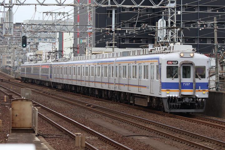 | 最後に6th CHAPTERでは新今宮駅9時35分発(遅れあり)南海線普通和歌山市行き、新今宮駅9時50分発高野線区間急行林間田園都市行きの画像から御紹介します。当CHAPTERの注目は5th CHAPTERで御紹介した7169F復元デザイン車両、珍しく7170車を先頭に関西空港へ向けて出発しました。 |