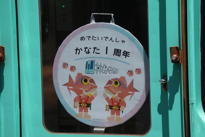 7月13日−めでたいでんしゃ かなた1周年記念ヘッドマークを掲出(#かなたび限定)。