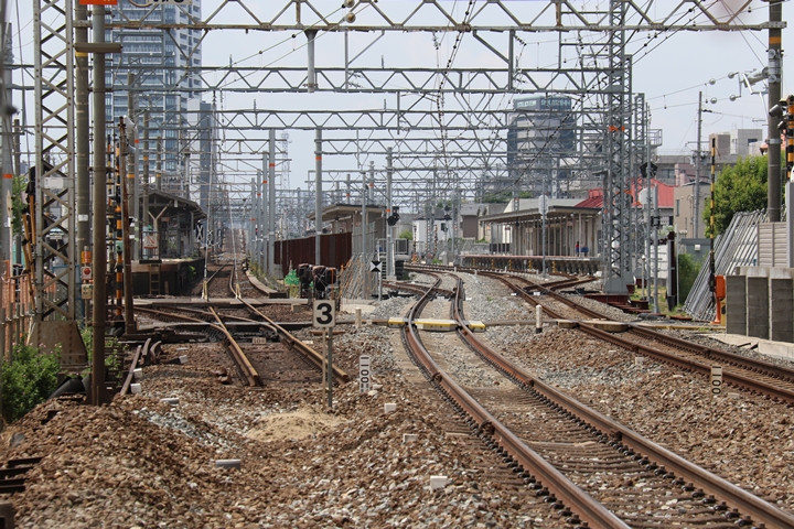 7月26日−浜寺公園駅下り仮設ホーム使用開始。