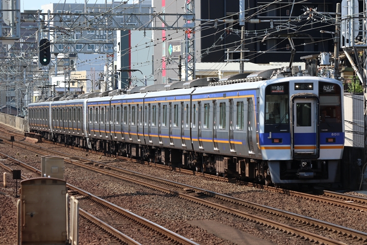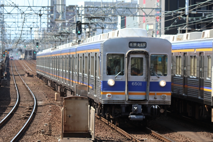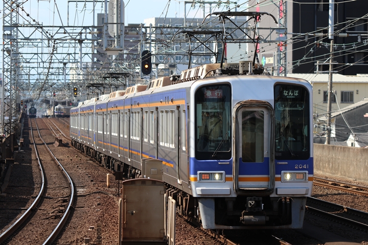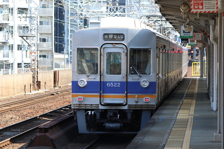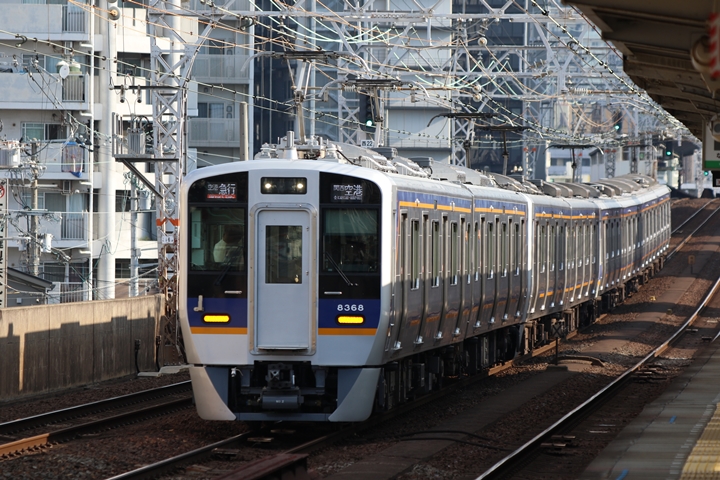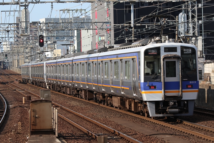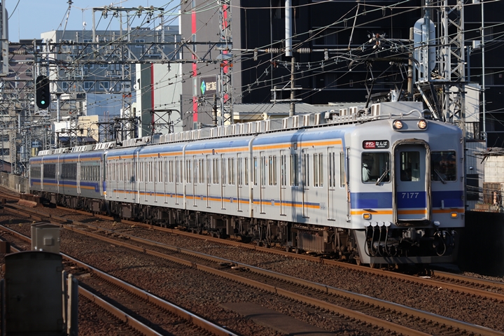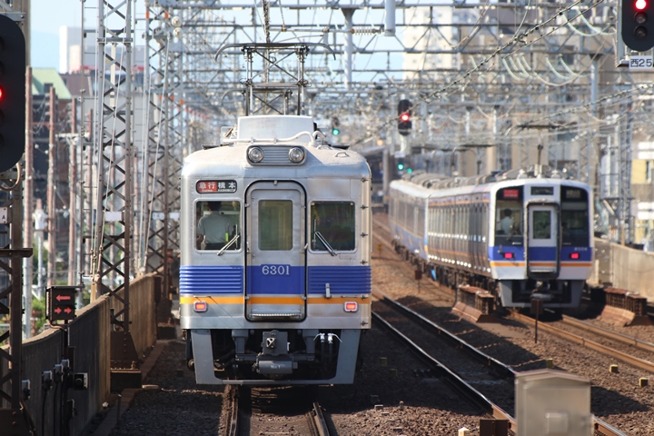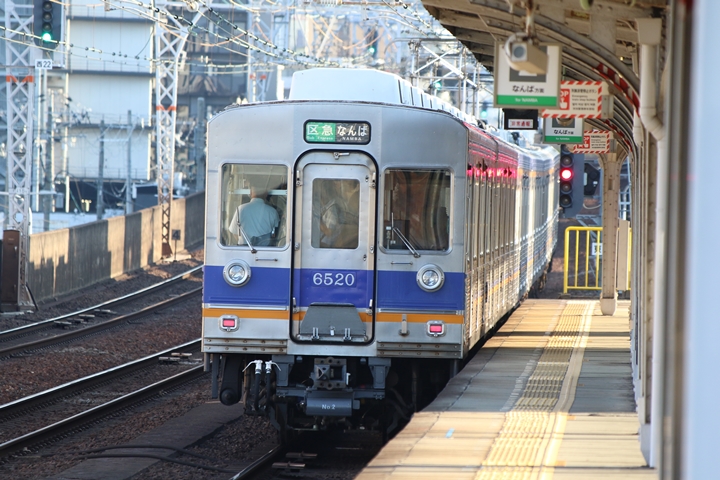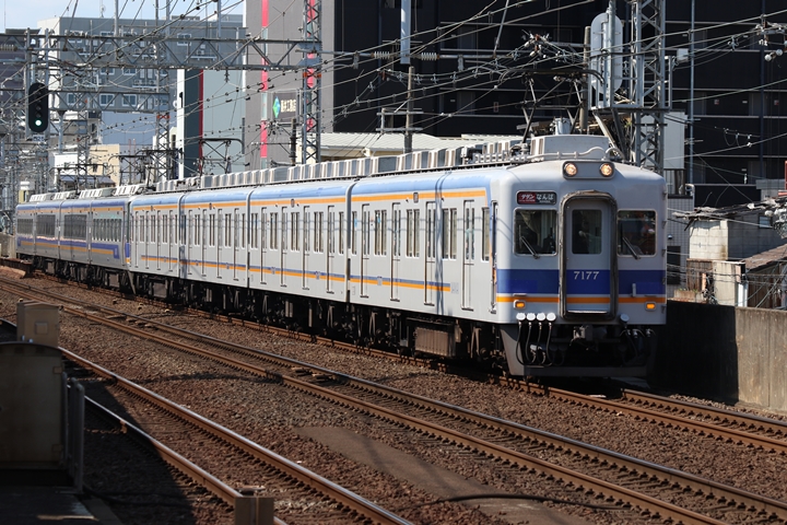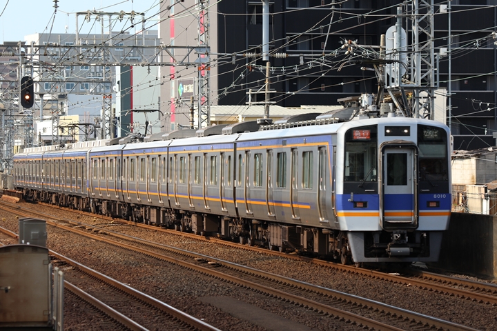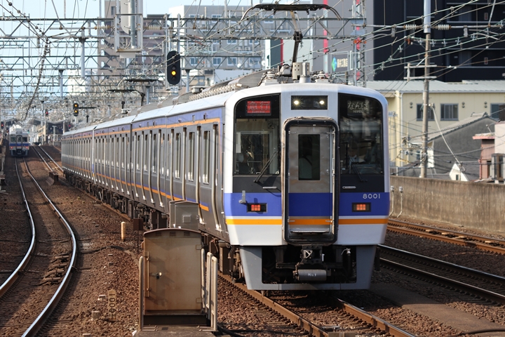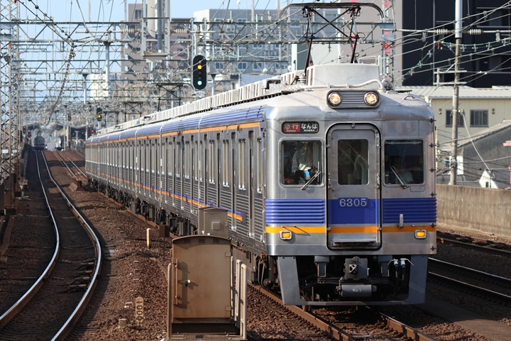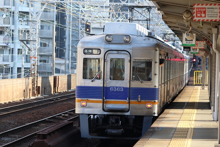 | 続いて6th CHAPTERでは天下茶屋駅7時54分発高野線急行なんば行き、新今宮駅7時59分発南海線普通羽倉崎行きの画像から御紹介します。当CHAPTERの注目は7100系ブツ連による特急サザン、令和9年度末に新型サザンの導入が発表され今のウチに色々な10000系をカメラに収めたく思います。 |