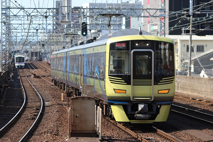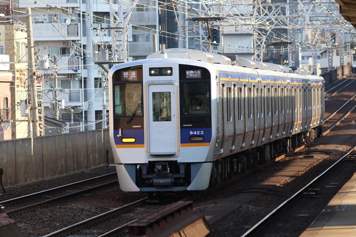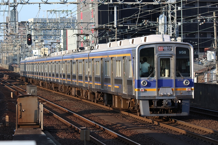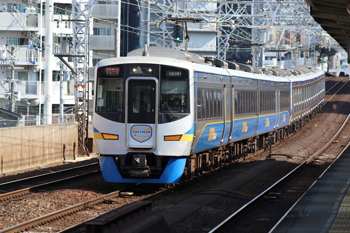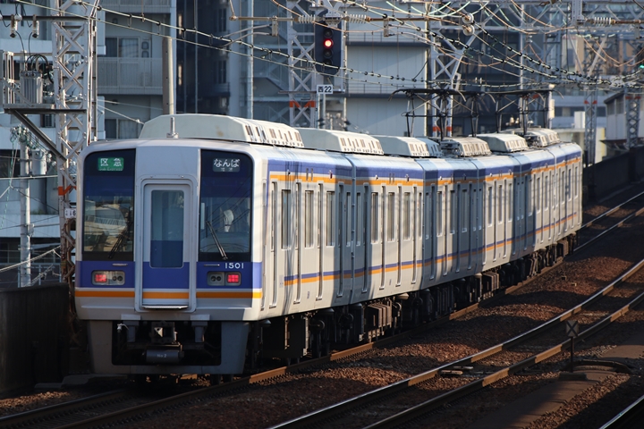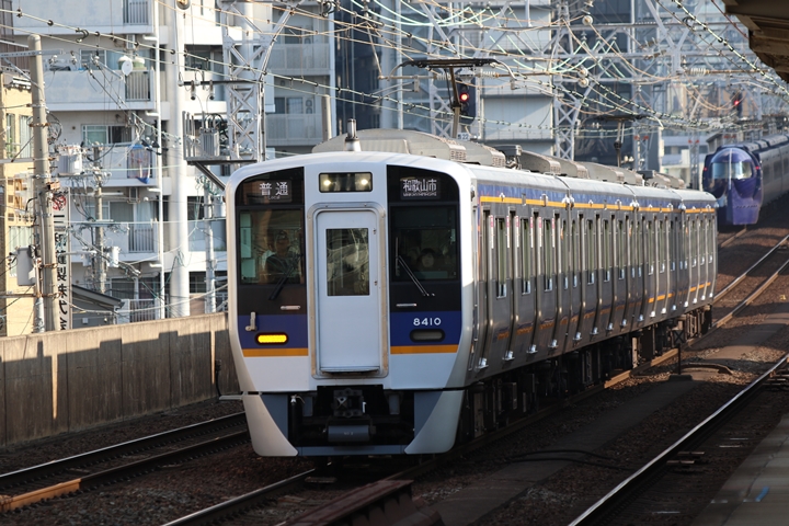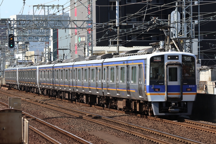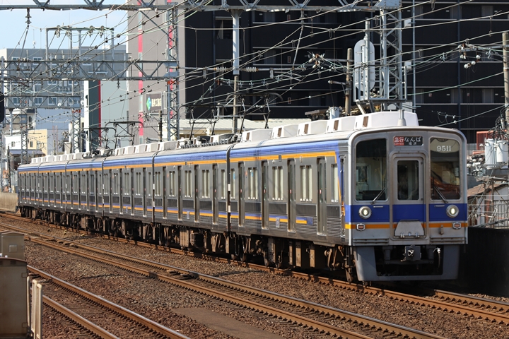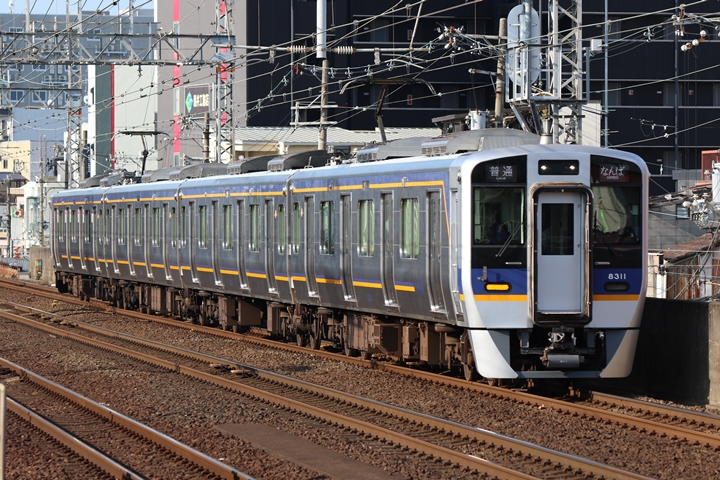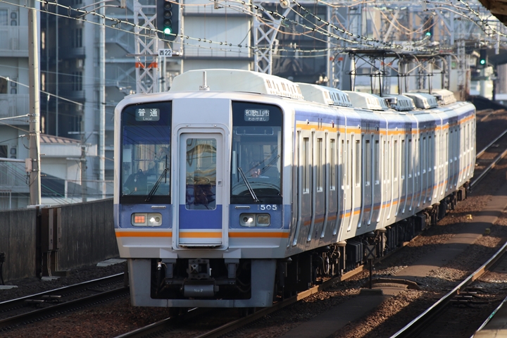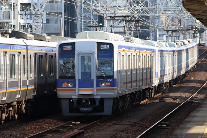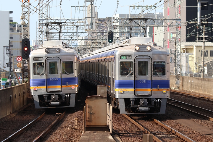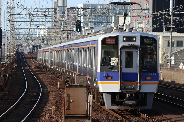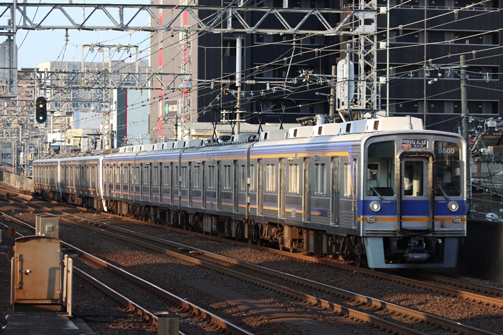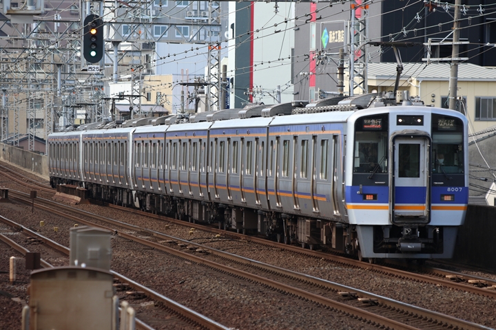 | 続いて6th CHAPTERでは天下茶屋駅7時54分発高野線急行なんば行き、新今宮駅7時59分発南海線普通羽倉崎行きの画像から御紹介します。当CHAPTERの注目は7100系ブツ連による特急サザン、令和9年度末に新型サザンの導入が発表され今のウチに色々な10000系をカメラに収めたく思います。 |