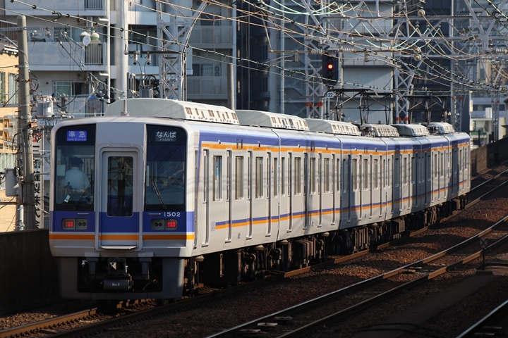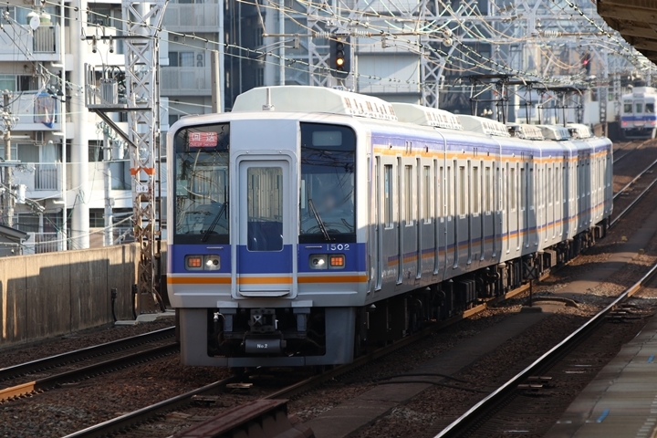 | 続いて4th CHAPTERでは新今宮駅7時22分発南海線急行和歌山市行き、天下茶屋駅7時21分発高野線区間急行なんば行きの画像から御紹介します。当CHAPTERの注目は平日ダイヤで2本のみ運行される準急行、まず一本目は1002Fがやって来ました。 |