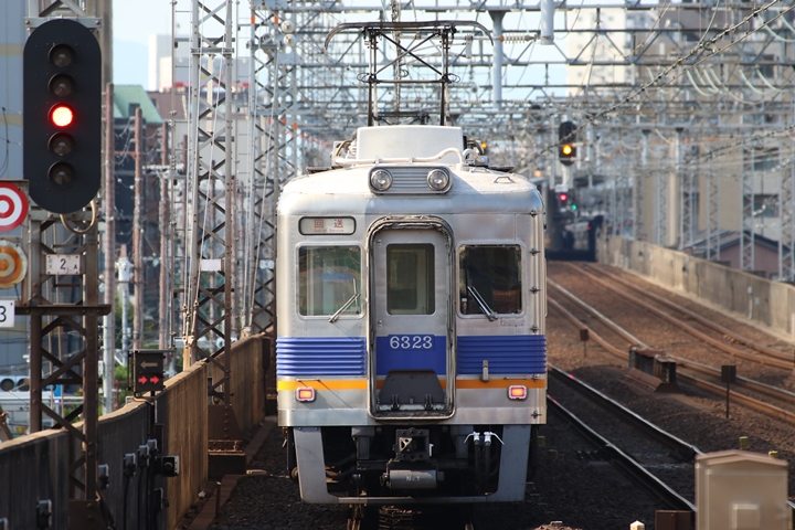 | 続いて7th CHAPTERでは天下茶屋駅8時13分発高野線区間急行なんば行き、新今宮駅8時14分発南海線普通羽倉崎行きの画像から御紹介します。当CHAPTERの注目は今のウチに撮りためしておきたい6000系、運用離脱していた現塗装車の6023Fが無事復帰しましたがとても希少な存在です。 |
