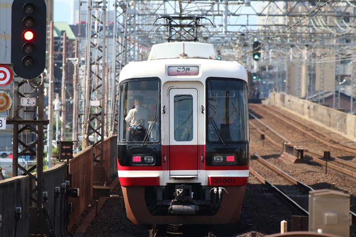 | 続いて3rd CHAPTERでは新今宮駅7時4分発南海線急行和歌山市行き、新今宮駅7時6分発高野線急行橋本行きの画像から御紹介します。当CHAPTERの注目は平日ダイヤ唯一の8連の特急りんかん、この日は30001F+30003Fがやって来ました。 |