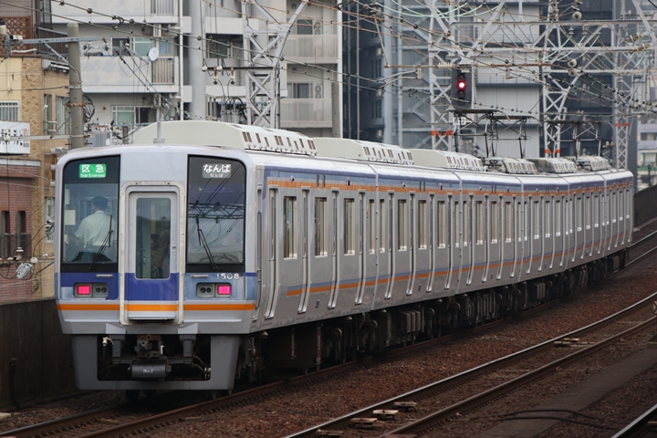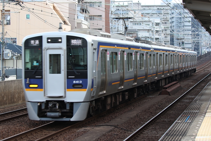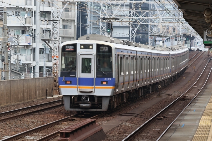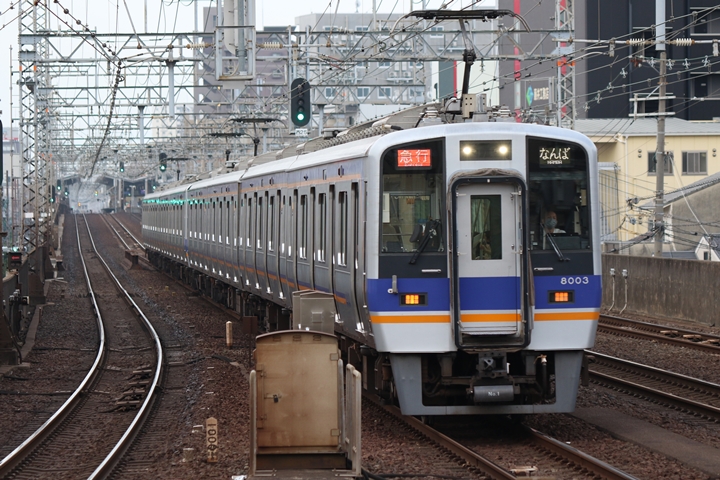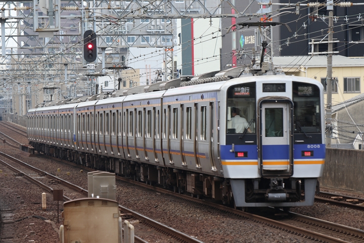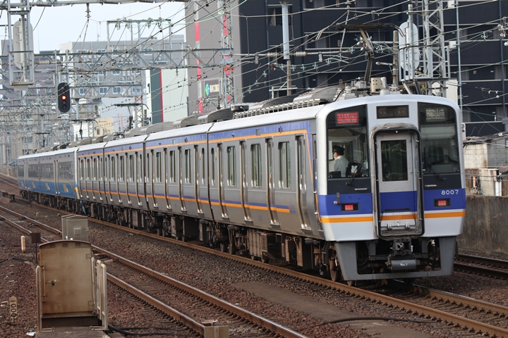 | 続いて5th CHAPTERでは天下茶屋駅7時45分発南海線普通なんば行き、新今宮駅7時50分発高野線急行橋本行きの画像から御紹介します。当CHAPTERの注目は今のウチに撮りためしておきたい7100系、8両連ねて関西空港へ向けて出発しました。 |
