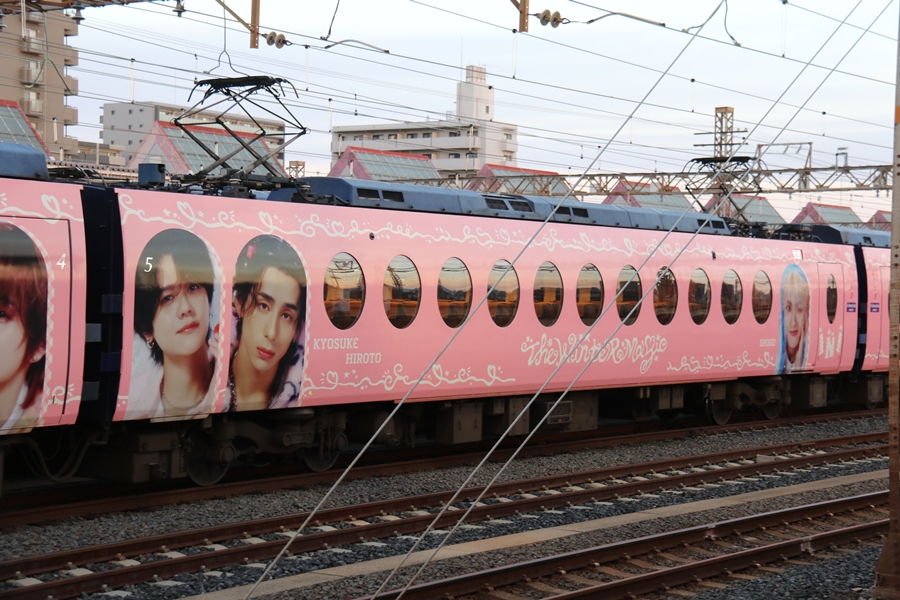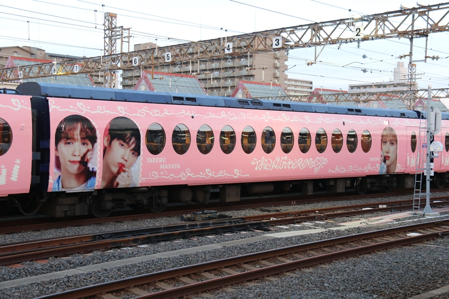 | 昨年12月31日(水)、私は早朝から仮面ライダークウガ展ヘッドマークを撮影しその帰り住ノ江車庫3番線に停車している「INI WINTER SINGLE ラッピングラピート」を撮影するために住ノ江駅で下車しました。ちなみにラッピングは第6編成(50506F)に施されています。 |