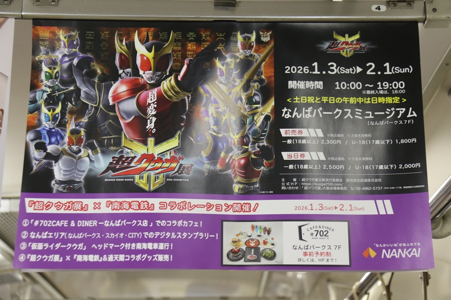 | 本年1月10日(土)、私は早朝から萩ノ茶屋駅・住ノ江駅・天下茶屋駅で撮り鉄し1月3日(土)から2月11日(日)まで行われていた「超クウガ展×南海電鉄 オリジナルデジタルスタンプラリー」に参加してきました。なんばエリア全10ヶ所を巡るスタンプラリー、まずはなんばスカイオにて1つ目のスタンプをスタンプをゲット。 |