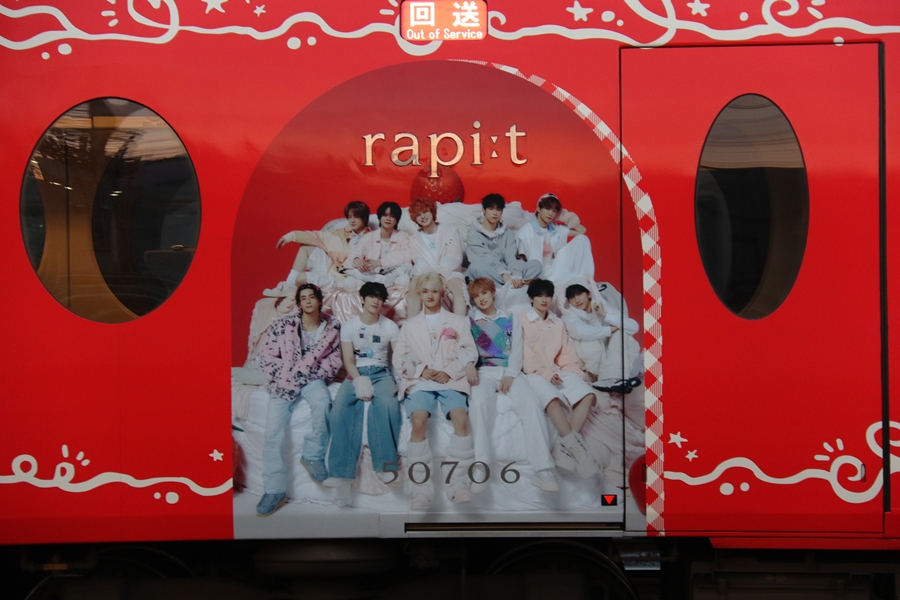 | 昨年10月14日(火)から1月中旬まで約3ヶ月間運行されたINI WINTER SINGLE ラッピングラピート「マジラピ号」(50506F)、そこで改めてINI WINTER SINGLE ラッピングラピートを整理してみました。まずは10月18日(土)、萩ノ茶屋駅にて撮影。 |